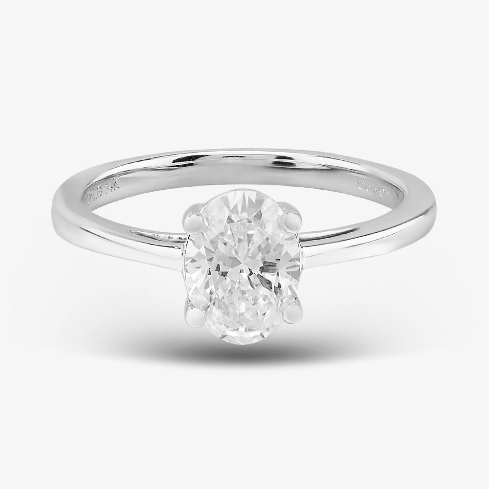 This elegant solitaire ring has been crafted in 14ct white gold and features a sparkling oval-cut Lab Grown Diamond set in a secure four-claw setting. This Lab Grown Diamond catches the light beautifully and would make the perfect traditional engagement ring or sentimental gift. This beautiful certificated ring has a Total Carat Weight of 1.00ct.