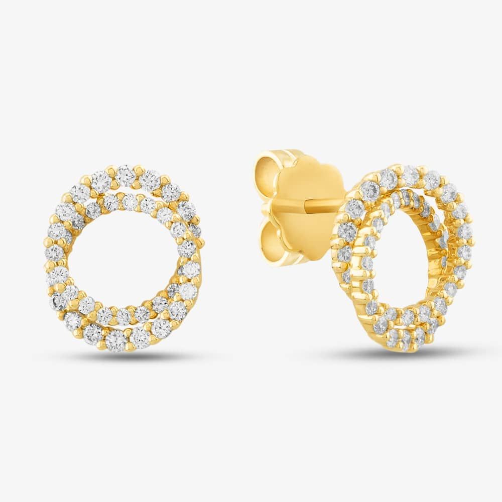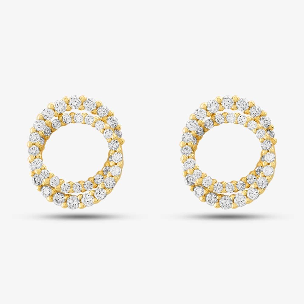 These earrings feature a unique crossover circle design adorned with a total of 0.40ct brilliant-cut diamonds, each shimmering with captivating brilliance. Crafted with precision and attention to detail, the warm glow of the yellow gold complements the sparkle of the diamonds. Finished with butterfly backings for secure and comfortable wear, these earrings are the epitome of sophistication.
