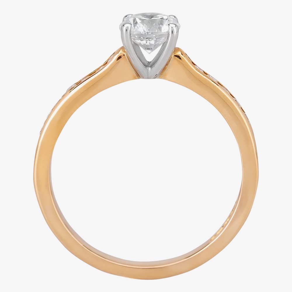 A stunning offering as an engagement ring, this ring features a certificated brilliant-cut 0.70ct centre diamond hand set in an 18ct White Gold four-claw V-shaped mount on an 18ct Rose Gold band with channel-set diamond shoulders.
