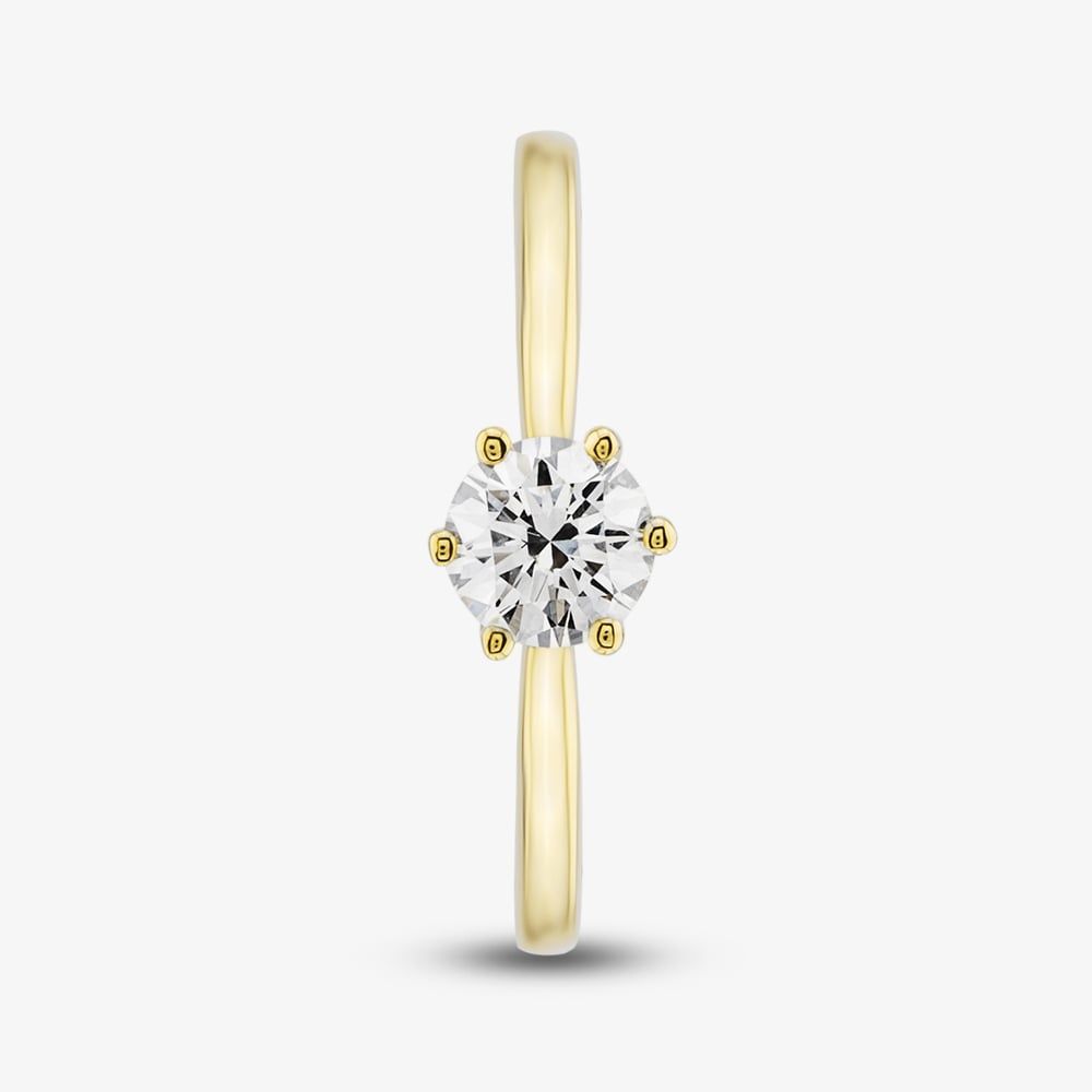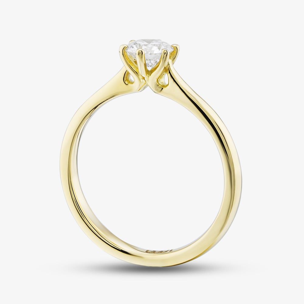 A stunning certificated 0.50ct round-cut diamond, elegantly set in an 18ct yellow gold six claw mount and a timeless, classic shaped band.