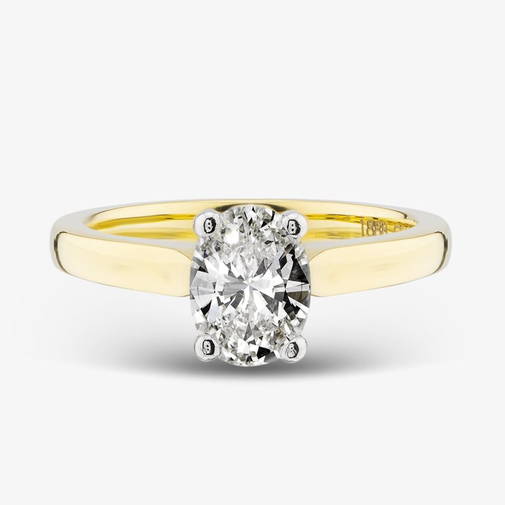A beautiful certificated 1.00ct oval-cut diamond, elegantly set in 18ct yellow gold with a four-claw mount and a timeless, classic shaped band.