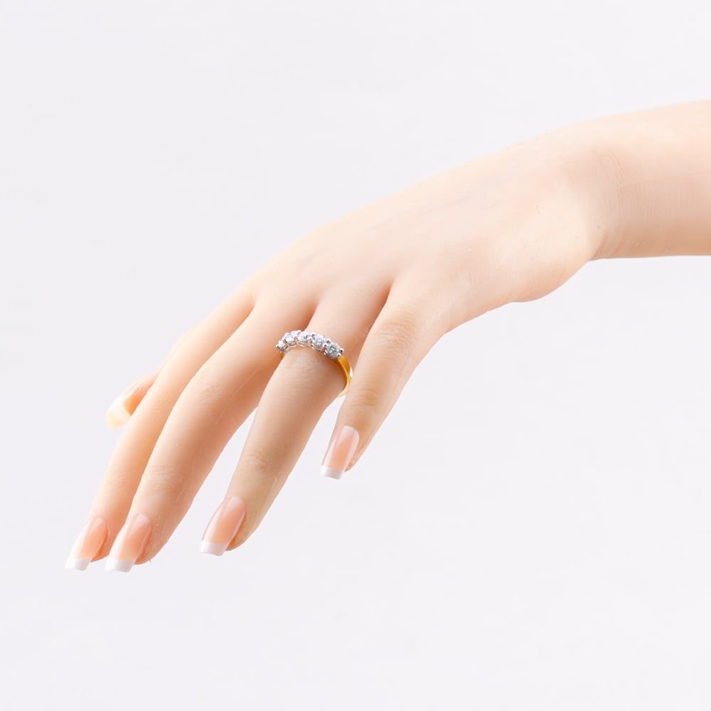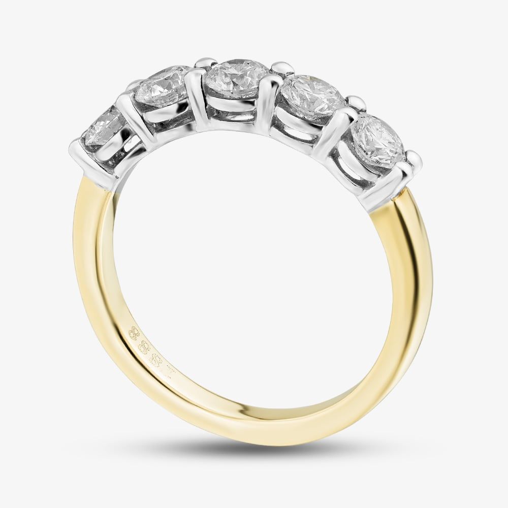 Five stunning certificated round cut diamonds, in an 18ct yellow gold four claw setting and classic shaped band. Total diamond carat weight 1.00ct.