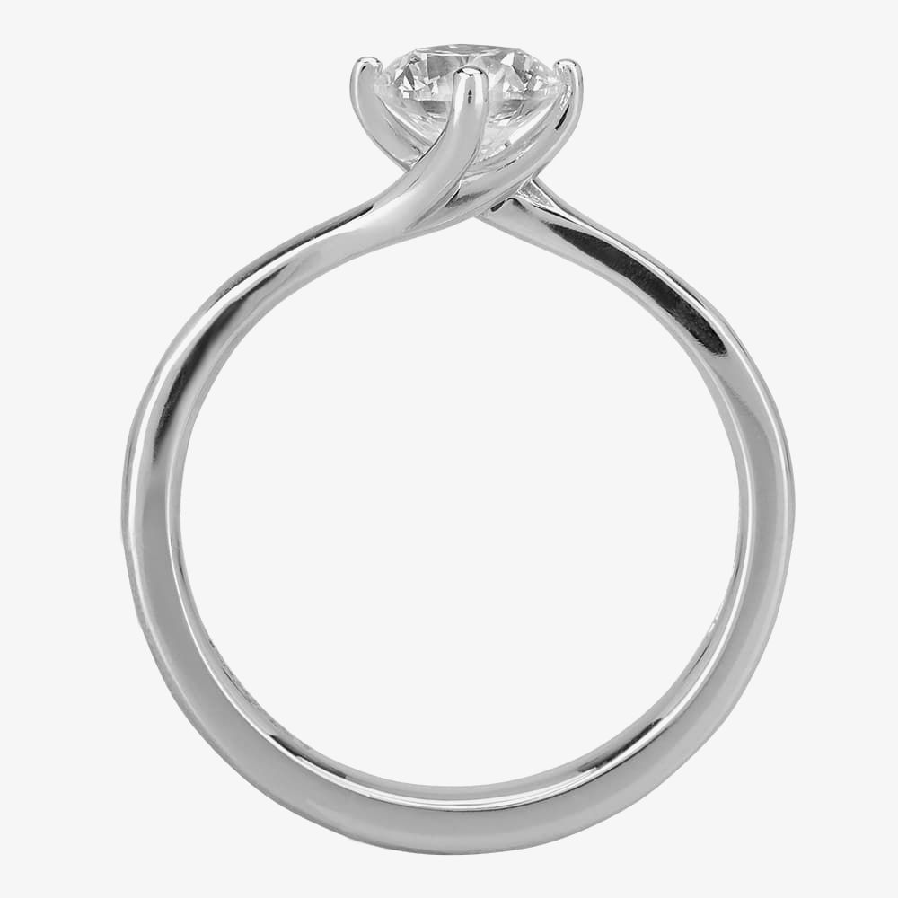 The perfect engagement ring for anyone who likes classic sparkle with unique design, this ring features a certificated 0.80ct round brilliant-cut diamond hand set in a platinum four-claw twisted mount.