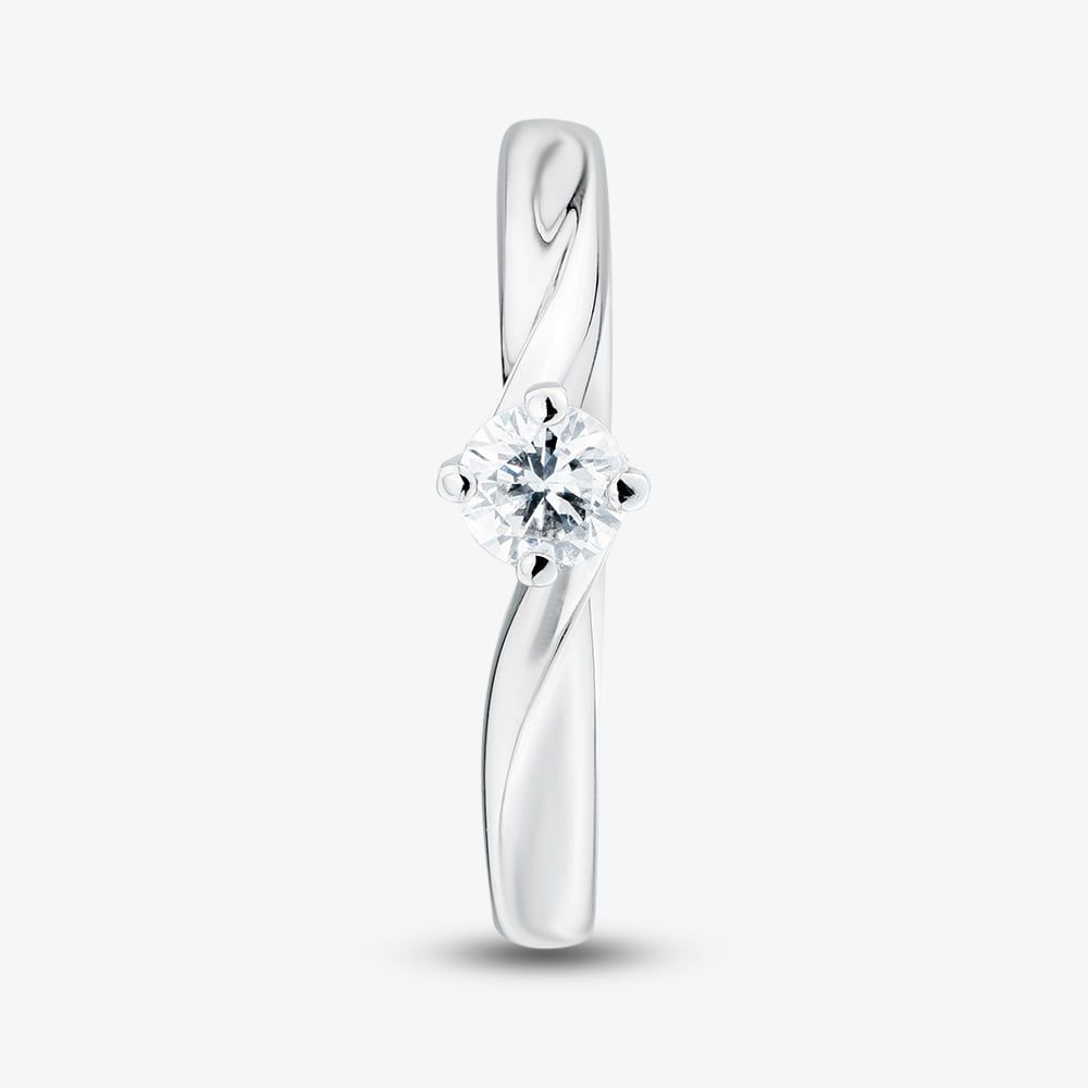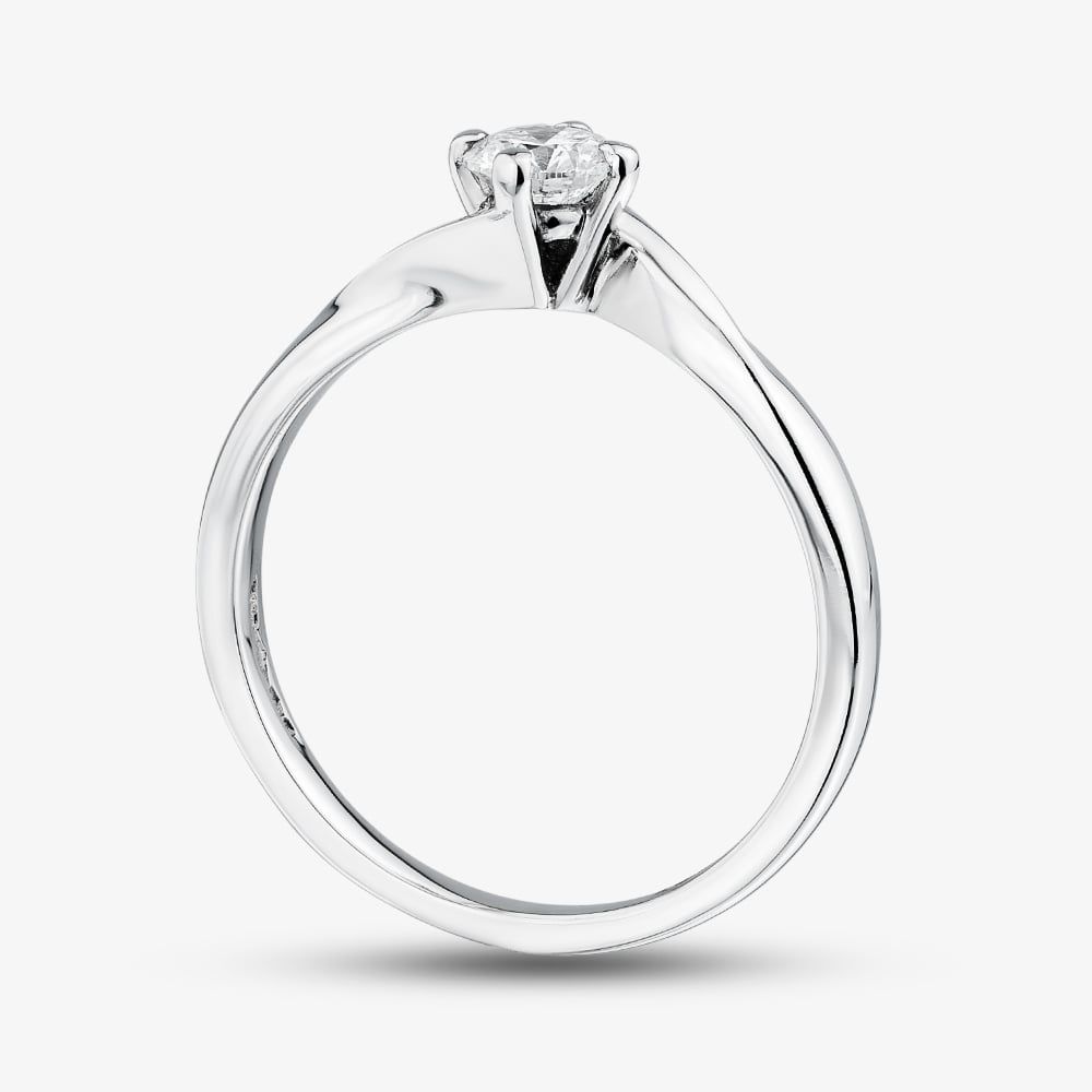 A stunning 0.33ct certificated round cut diamond in a platinum four claw setting and soft twist shaped band.
