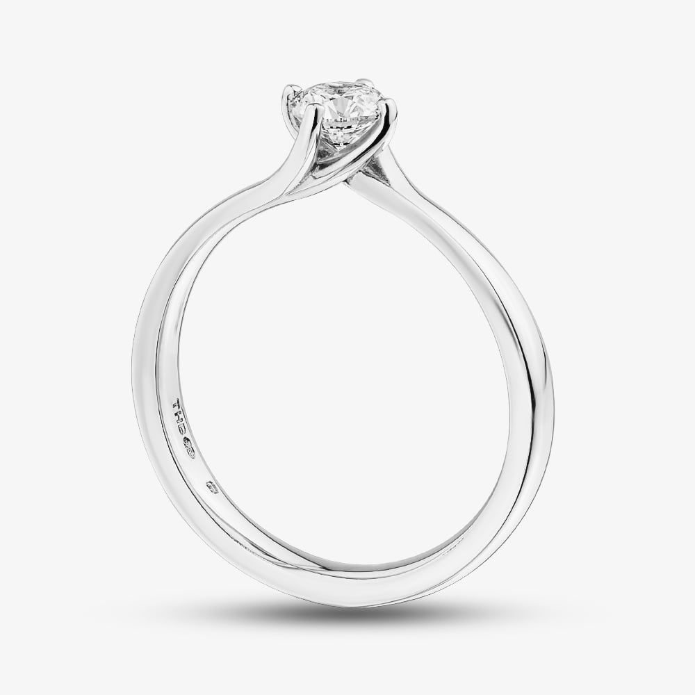 A stunning 0.40ct certificated round cut diamond in a platinum four claw setting and soft twist shaped band.