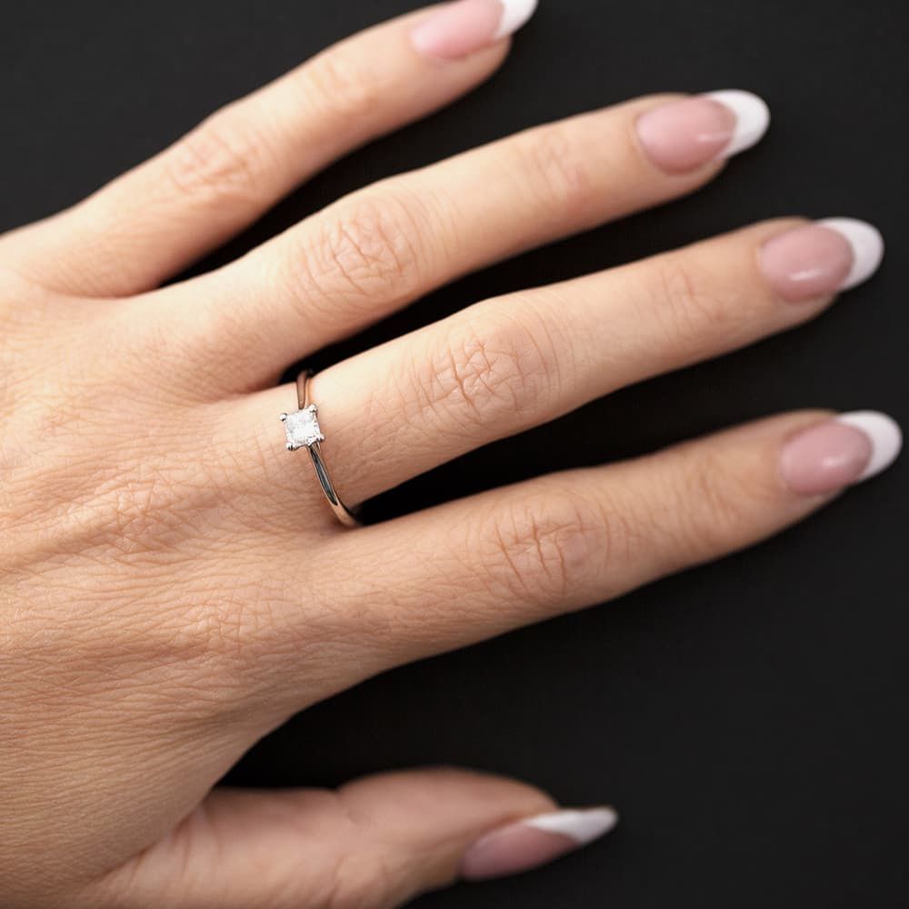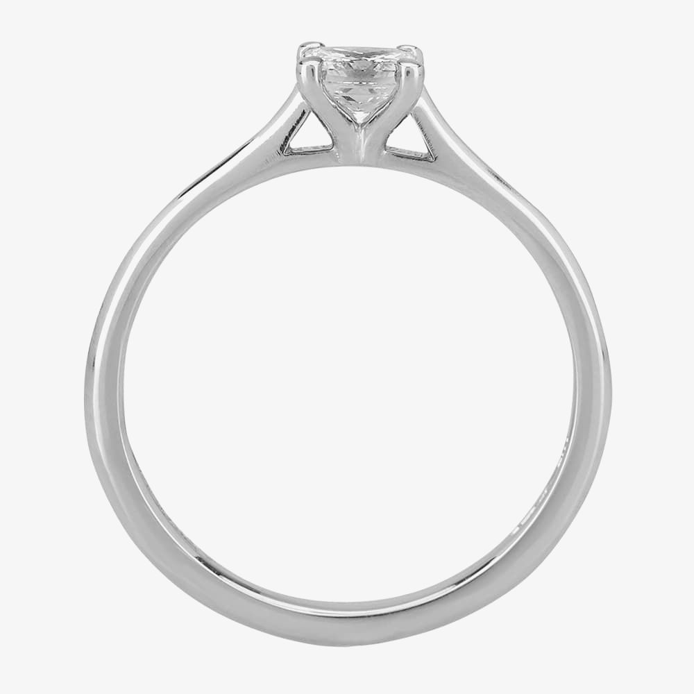 A 0.33ct certificated princess-cut diamond, hand set in a stunning platinum four-claw tapered cathedral mount.