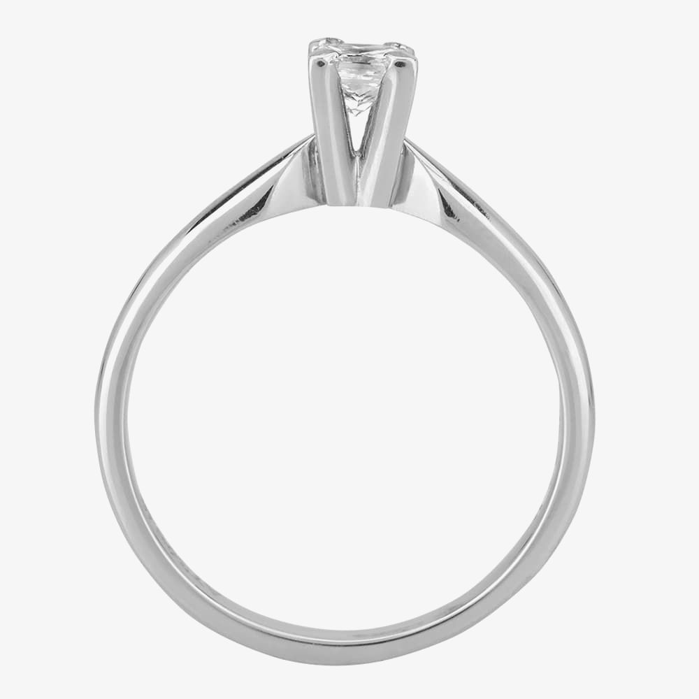 A 0.25ct princess-cut certificated diamond which is beautifully hand set in a platinum four-claw deep v-shaped mount with a classic shaped band.