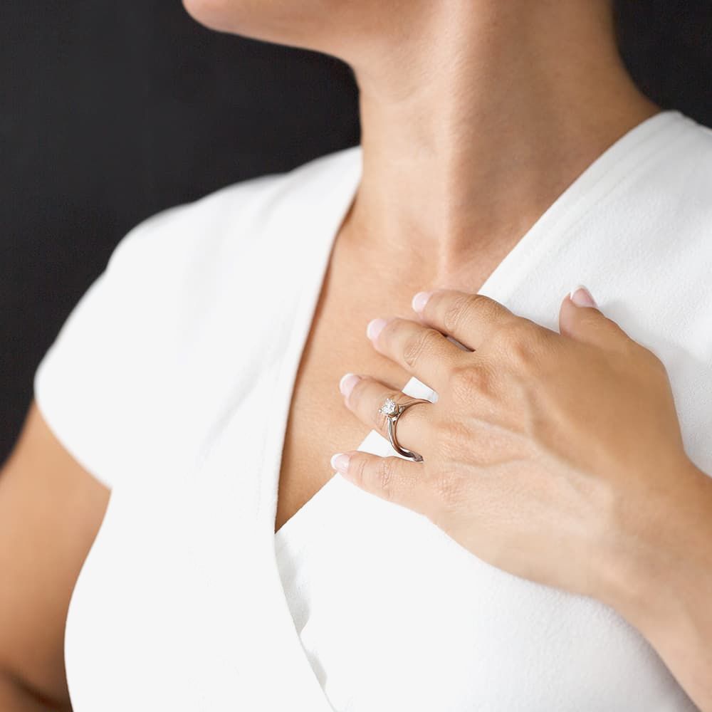 The perfect engagement ring for anyone who likes classic sparkle with unique design, this ring features a certificated 0.80ct round brilliant-cut diamond hand set in a platinum classic four-claw mount.