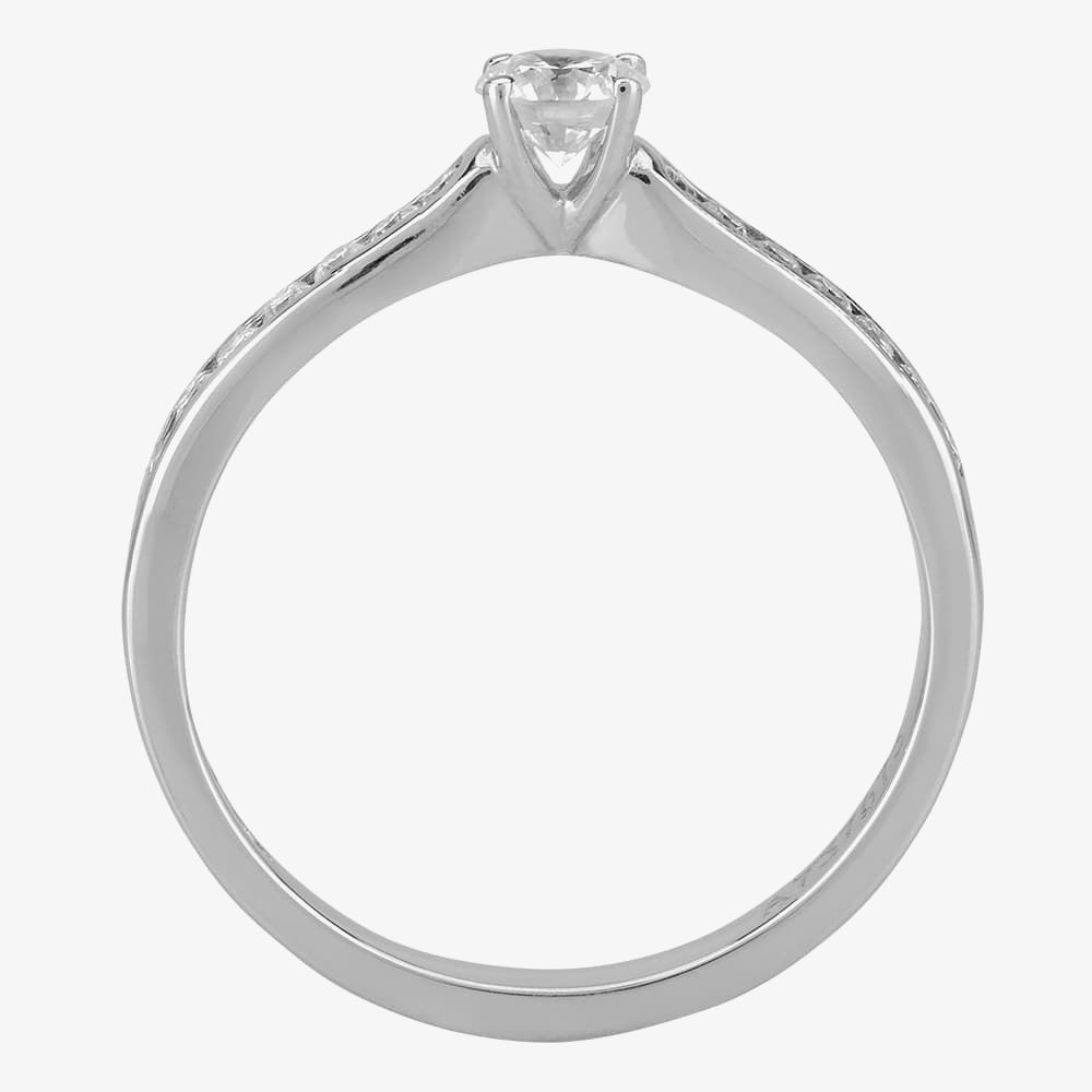 A stunning offering as an engagement ring, this ring features a certificated brilliant-cut 0.25ct centre diamond which is hand set on a platinum band & four-claw V-shaped mount with channel-set diamond shoulders. Available in a variety of diamond colour, clarity and carat options.