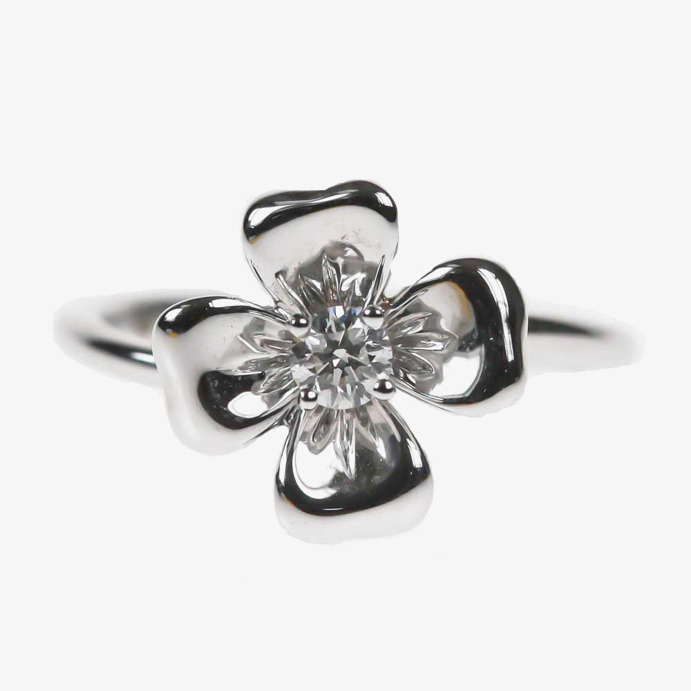 Delicate and girly, this stackable ring enables you to keep good luck with you. A single brilliant Diamond is clustered in the heart of the four-leaf clover, adding a hint of sparkle to your hand.