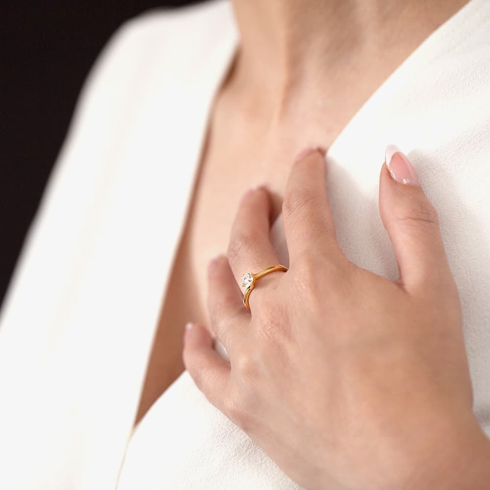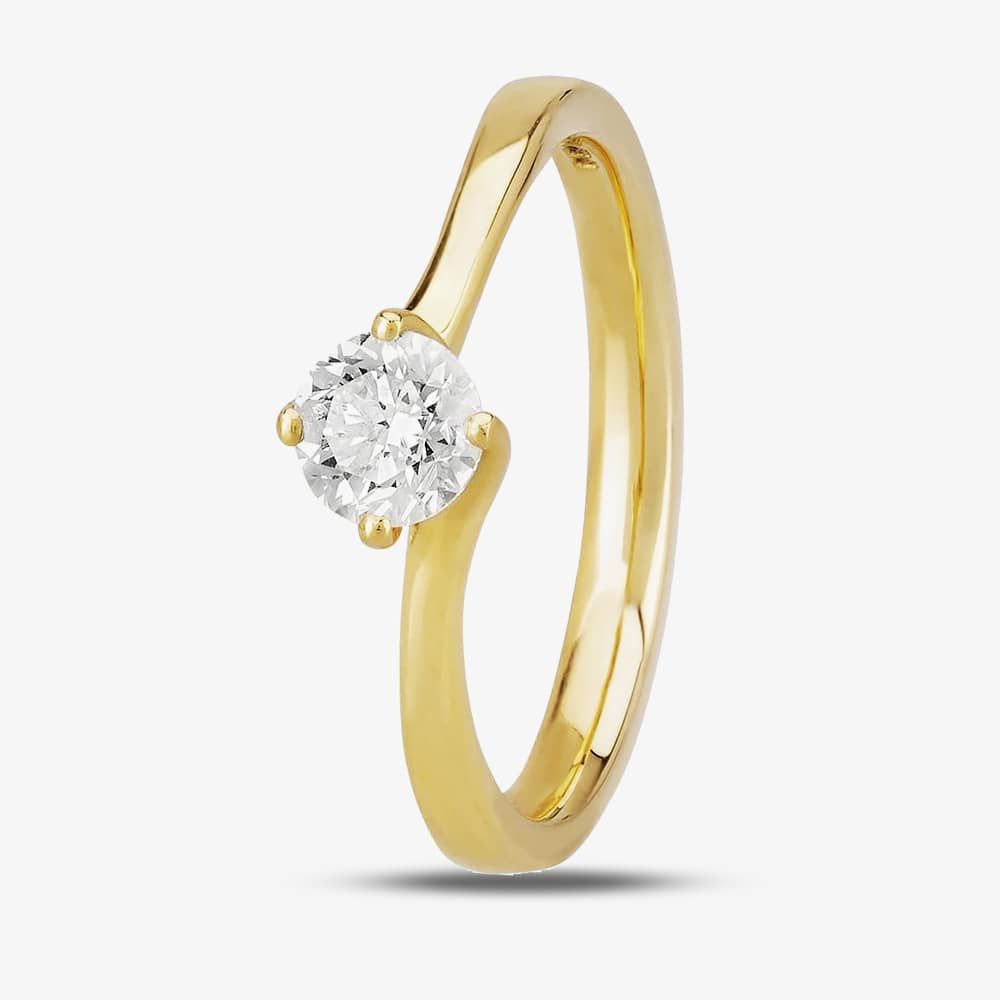 The perfect engagement ring for anyone who likes classic sparkle with unique design, this ring features a certificated 0.50ct round brilliant-cut diamond hand set in an 18ct yellow gold four-claw twisted mount.