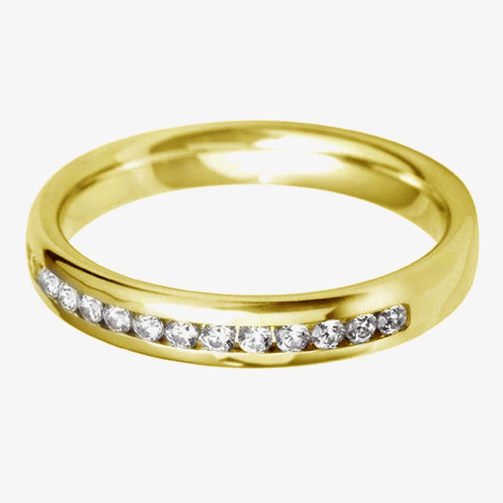 A beautifully sparkly wedding ring that makes a standout addition to any ring finger. Expertly crafted in 18ct yellow gold, featuring a channel of dazzling diamonds in an attractive court shape finish. Our range of wedding rings encompasses all the needs of the modern market place, that is style, sophistication and most of all quality at a very reasonable price. Every wedding ring is accompanied with a presentation box and is available for dispatch in 24 hours.