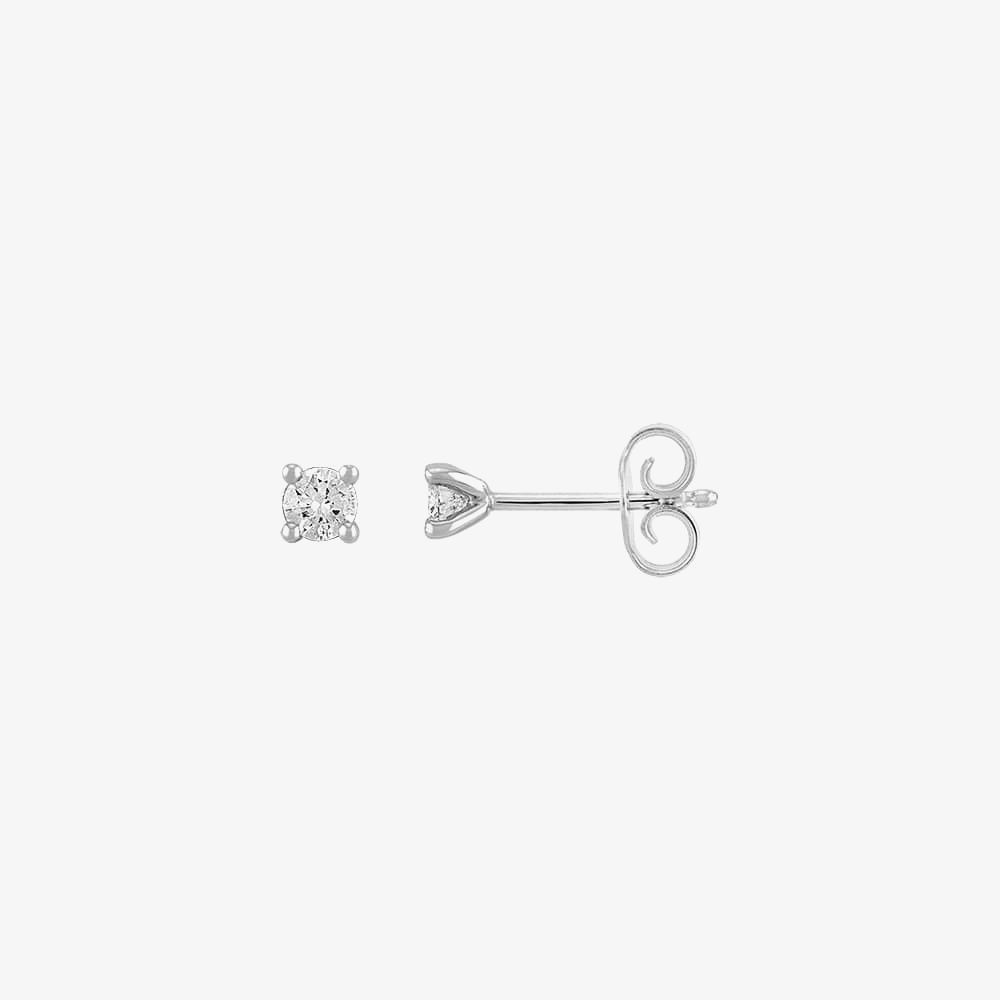Elegant and beautifully understated these stunning 18ct white gold stud earrings feature a round clear 0.25ct diamond in a four claw setting.