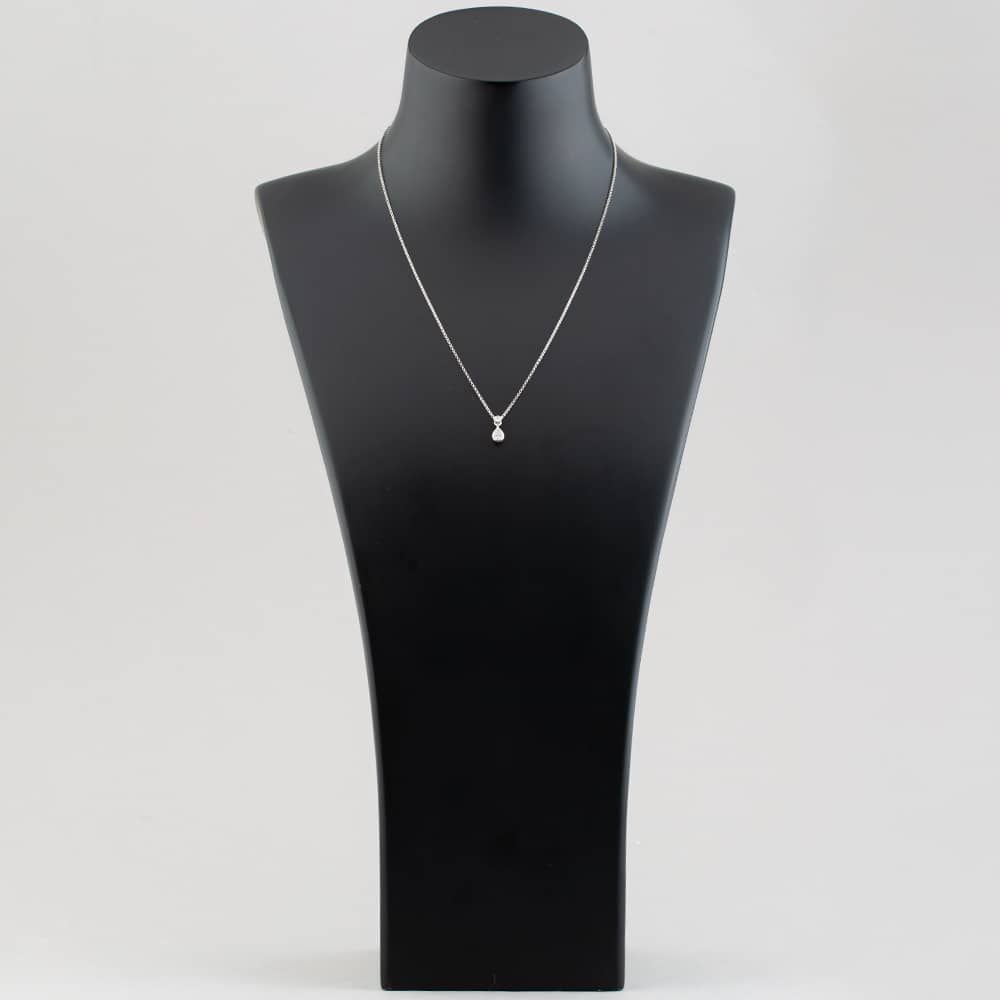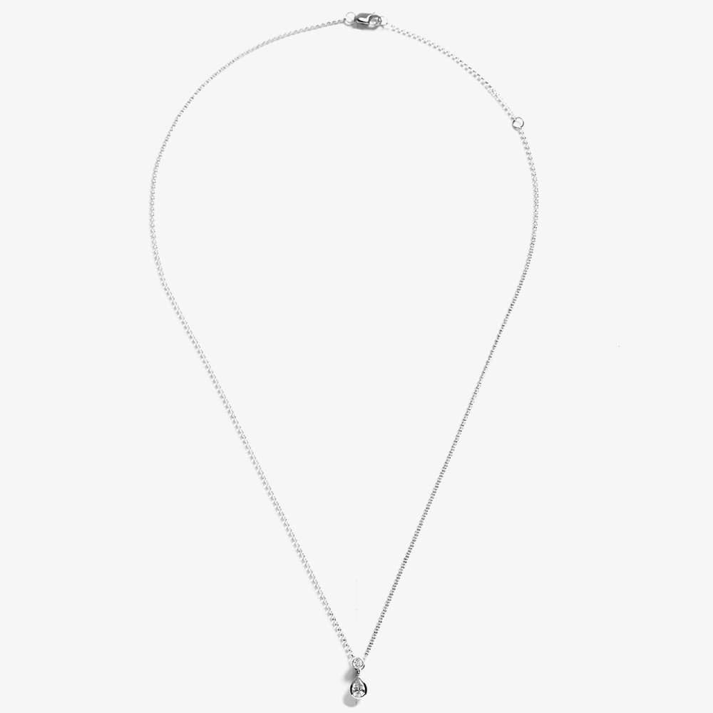 This stunning necklace features a pear-cut diamond dropper, gracefully suspended from a delicate chain. Above the pear-cut diamond sits a brilliant-cut diamond, adding an extra touch of sparkle and sophistication. With a total carat weight of 0.31ct, the diamonds shimmer with mesmerising brilliance. Crafted with meticulous attention to detail and set in luxurious white gold, this necklace is perfect for adding a touch of glamour to any ensemble.