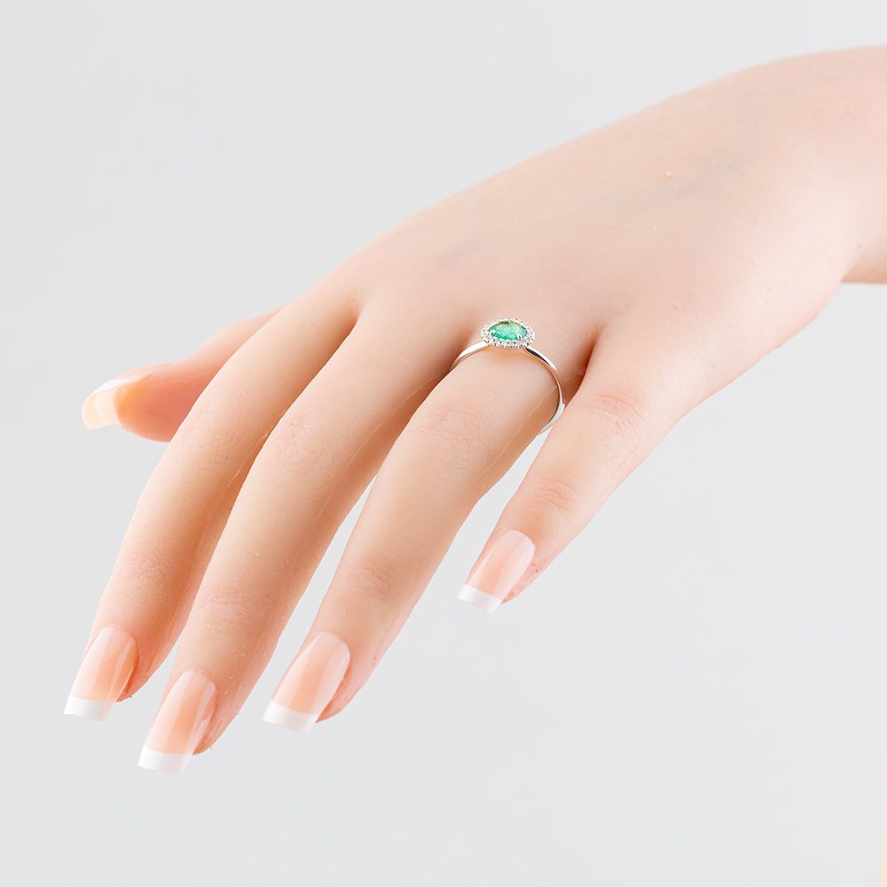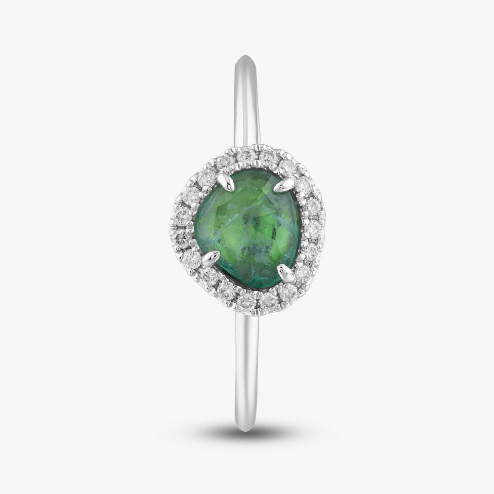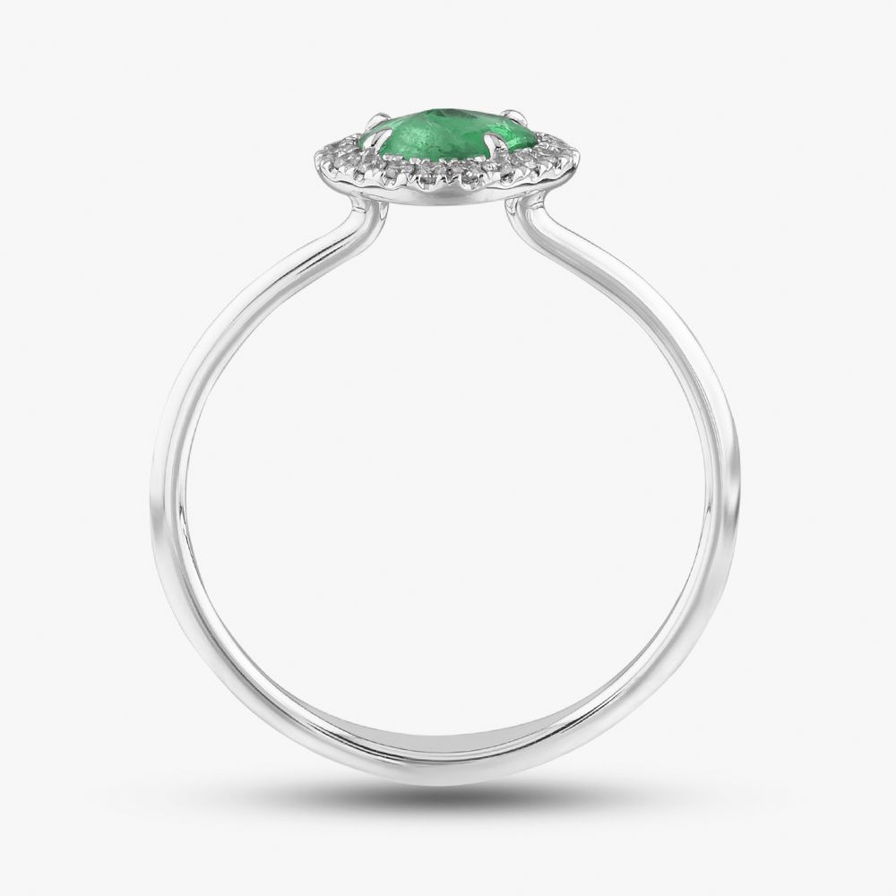 Crafted with a touch of simplicity, this 1.2mm halo ring exudes timeless elegance. Delicate 18ct white gold embraces a 0.37ct emerald centre stone, accentuated with a 0.07ct brilliant-cut white diamond halo. The perfect accompaniment for any special occasion, this ring promises to leave a lasting impression.