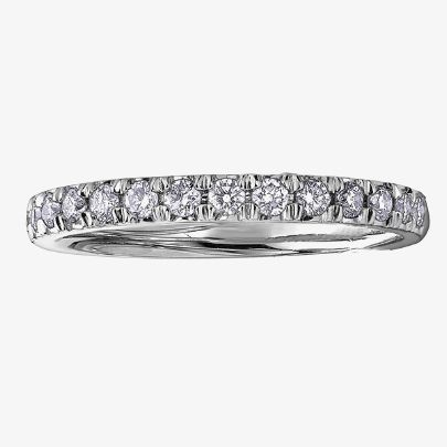 This 18ct white gold ring has a half eternity design encrusted with delicious diamonds. The perfect gift to show your love.