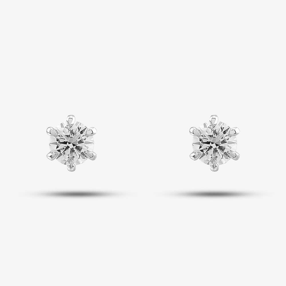 Exquisite craftsmanship meets dazzling diamonds in the T H Baker Earrings Collection. These stunning studs are crafted from the finest 18ct white gold and feature two brilliant-cut white certified diamonds, each graded F in colour and VS2 in clarity with a total carat weight of 0.51ct. The centre stones are accentuated further with an additional twelve diamonds totalling 0.02ct. The diamonds are set in a six claw setting for maximum sparkle, and the butterfly backing ensures a secure fit.