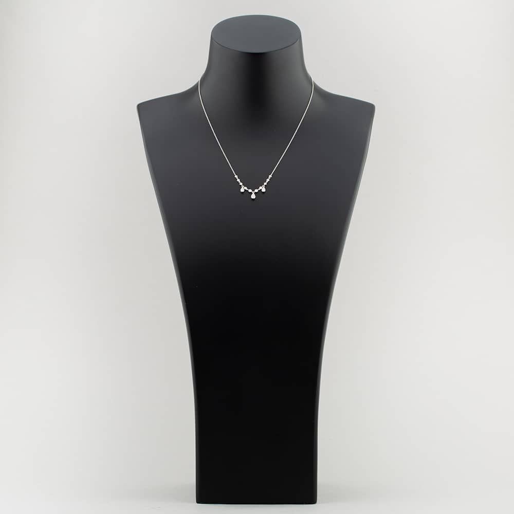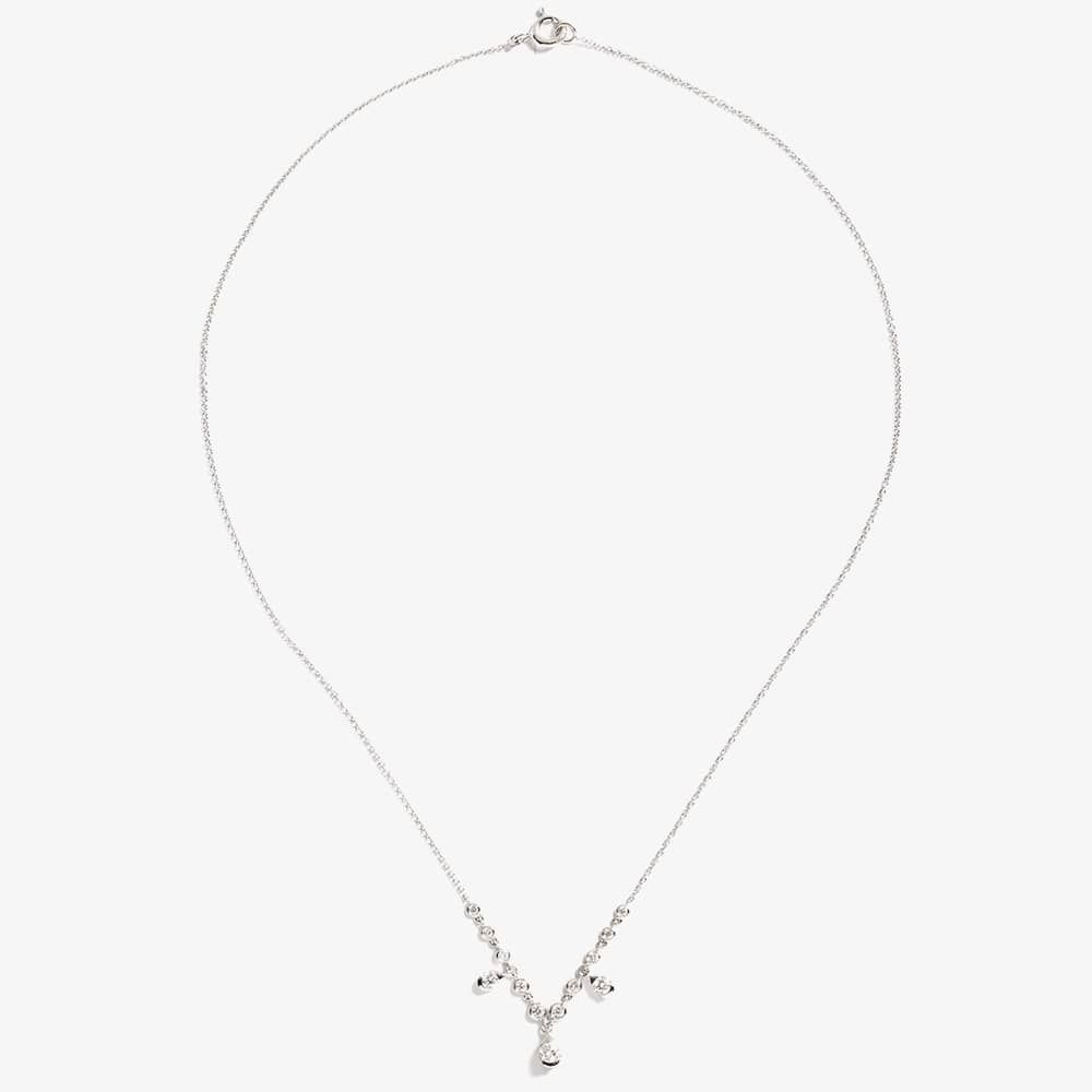 Shimmering with understated elegance, this 18ct white gold necklet features a sleek 16 inch belcher chain adorned with thirteen brilliant-cut white diamonds, totalling 0.52ct, nestled along a sleek 40cm belcher chain. Three diamonds cascade gracefully, each securely held in a timeless rubover setting, allowing the diamond's natural brilliance to take centre stage, which promises to sparkle with every movement, making this necklet a timeless symbol of subtle luxury.