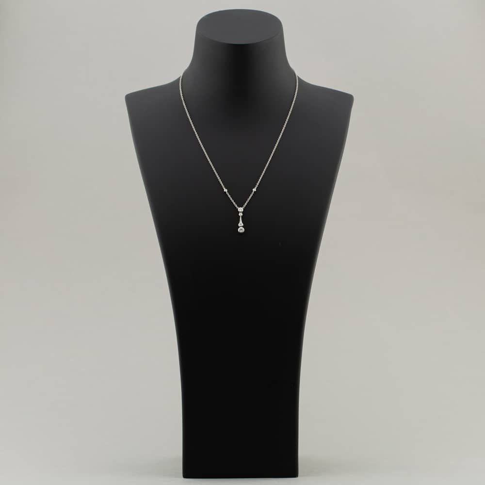 The necklace showcases diamonds with a clarity grade of SI and a colour grade of H, ensuring exceptional brilliance and sparkle. With a total carat weight of 0.56ct, the diamonds are set in a rubover setting. This necklace exudes elegance and sophistication, making it the perfect accessory for any occasion.