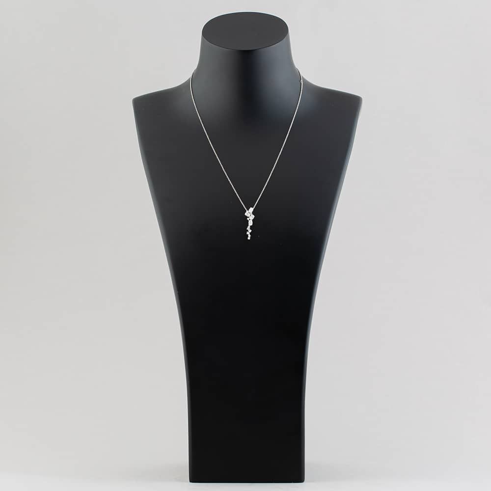 Embrace the timeless beauty of this dropper necklace. Crafted from 18ct white gold, it showcases 0.97ct of oval and brilliant cut diamonds, suspended on an adjustable belcher chain securely fastened with a lobster claw clasp. A standout addition to any jewellery collection.