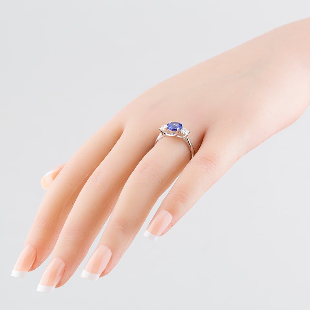 An elegant 18ct white gold shoulder-set solitaire ring featuring a stunning 1.3ct brilliant-cut tanzanite at its centre with a four claw setting. The design is enhanced by princess-cut diamonds on the shoulders, with a total diamond weight of 0.42ct, creating a timeless and sophisticated piece that beautifully combines vibrant colour and sparkling brilliance.