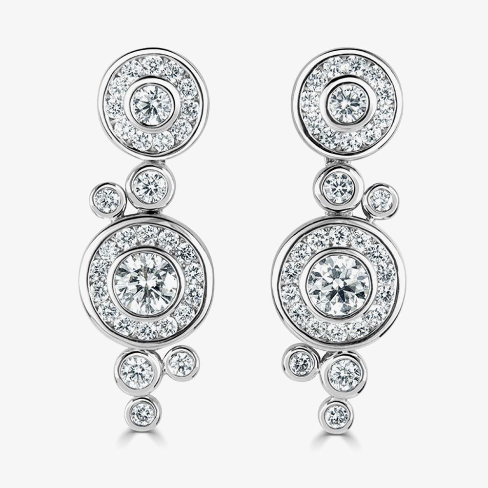 Perfect for adding show-stopping sparkle to any occasion or outfit, the 18ct White Gold Dew Drop 1.41ct Diamond Dropper Earrings are a must-have for any jewellery box. Made from an 18ct white gold, these dew-drop style dropper earrings with butterfly backs feature 1.41ct of round brilliant-cut diamonds arranged in halos in rubover and channel settings, set to give anyone who wears them some dazzling sparkle and individuality. Pairs beautifully with the 18ct White Gold Dew Drop Diamond and Sapphire Necklace LG195/NA(BS) or the 18ct White Gold Dew Drop Diamond Bangle LG204/BA.
