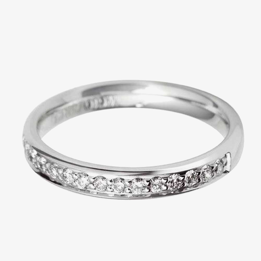 A beautiful ladies wedding band, expertly crafted in 18ct white gold to give a luxurious finish. The stylish court shaped band features a host of stunning diamonds in an attractive grain set design. The sparkly stones have been brilliant cut with a colour H and clarity SI to give a radiant shine to any ring finger.
