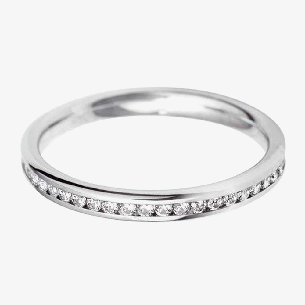 This luxurious wedding band is exquisitely crafted from 18ct white gold, hosting a stunning channel of dazzling diamonds you will love to flaunt. The elegant 2.5mm band is court shaped for a stylish finish, featuring a channel of brilliant cut diamonds with colour H and clarity SI that give a radiant sparkle to any ring finger.