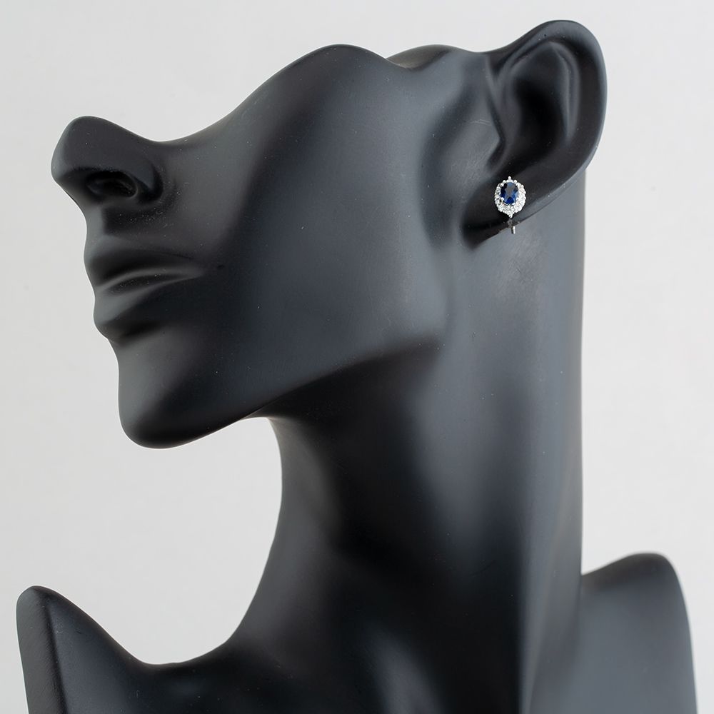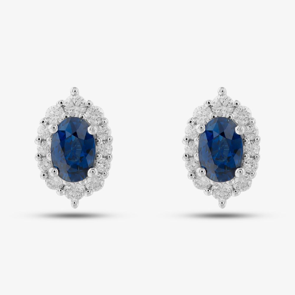 Embrace the timeless beauty of these sapphire halo earrings. Crafted from 18ct white gold, they showcase an oval-cut sapphire centre stone, accentuated with a brilliant-cut white diamond halo. These stud earrings are finished with a butterfly backing for secure and comfortable wear. These earrings are perfect for adding a touch of luxury to any occasion.