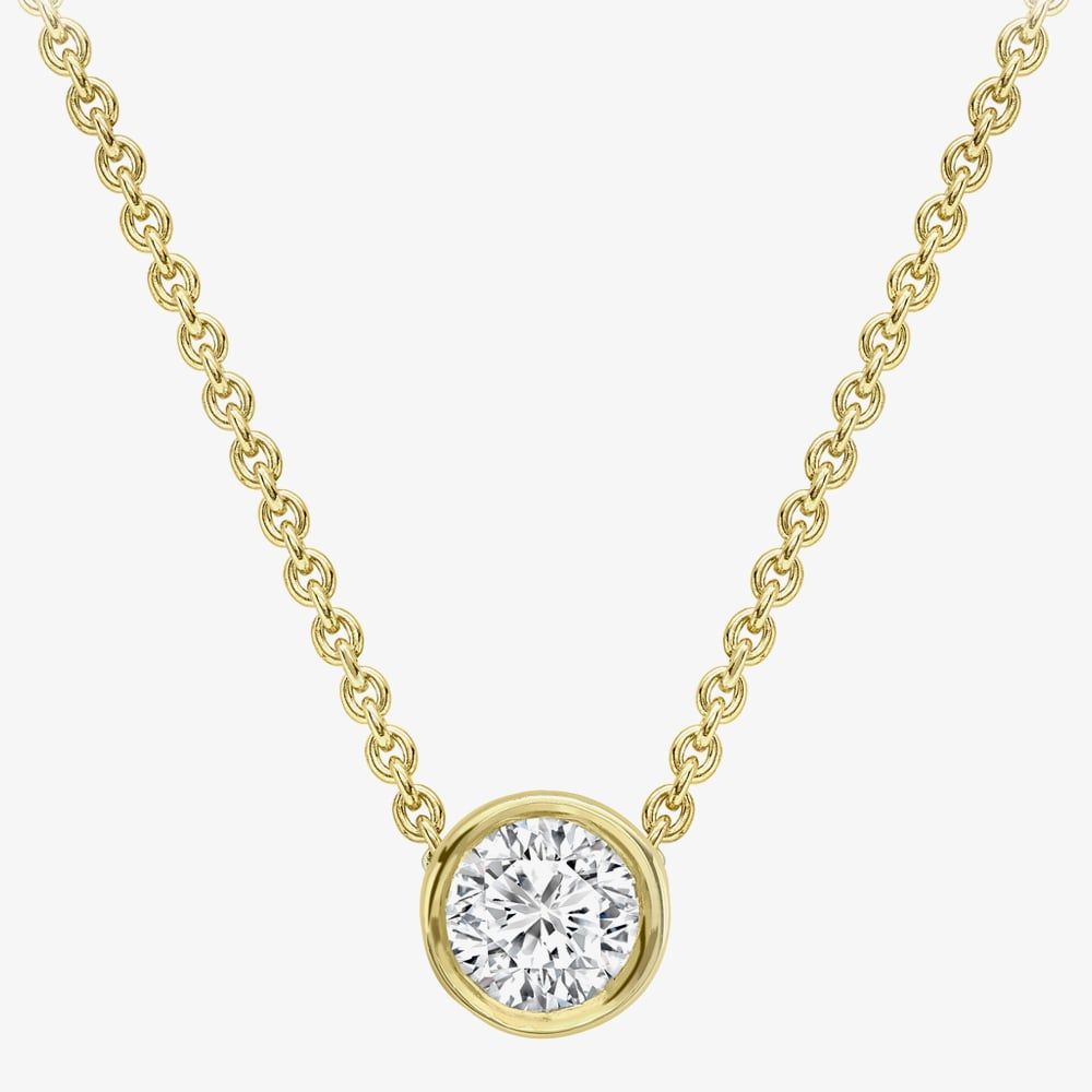 This elegant necklace has been created in 18ct yellow gold & features a sparkling 0.08ct rubover set pendant & is completed on an 18-inch trace link chain. Dimensions: 3.4 x 3.4mm.