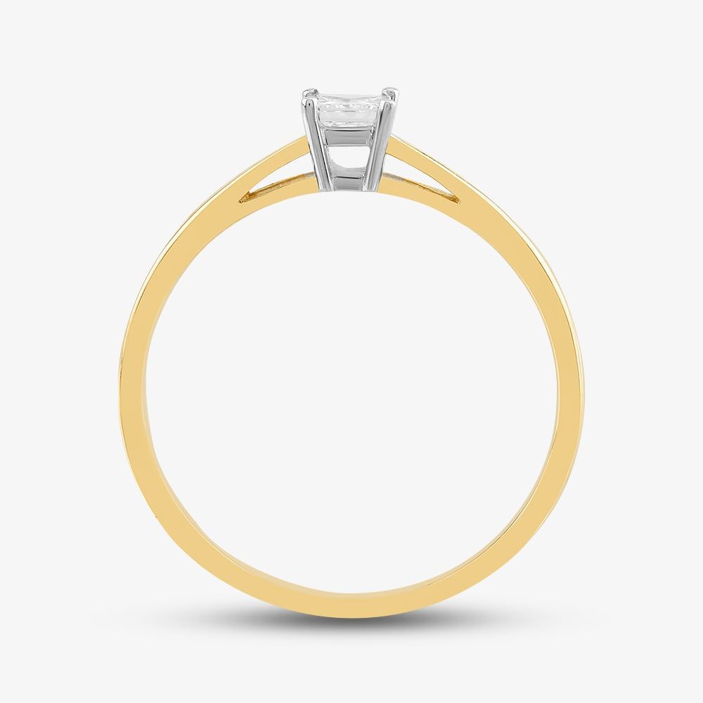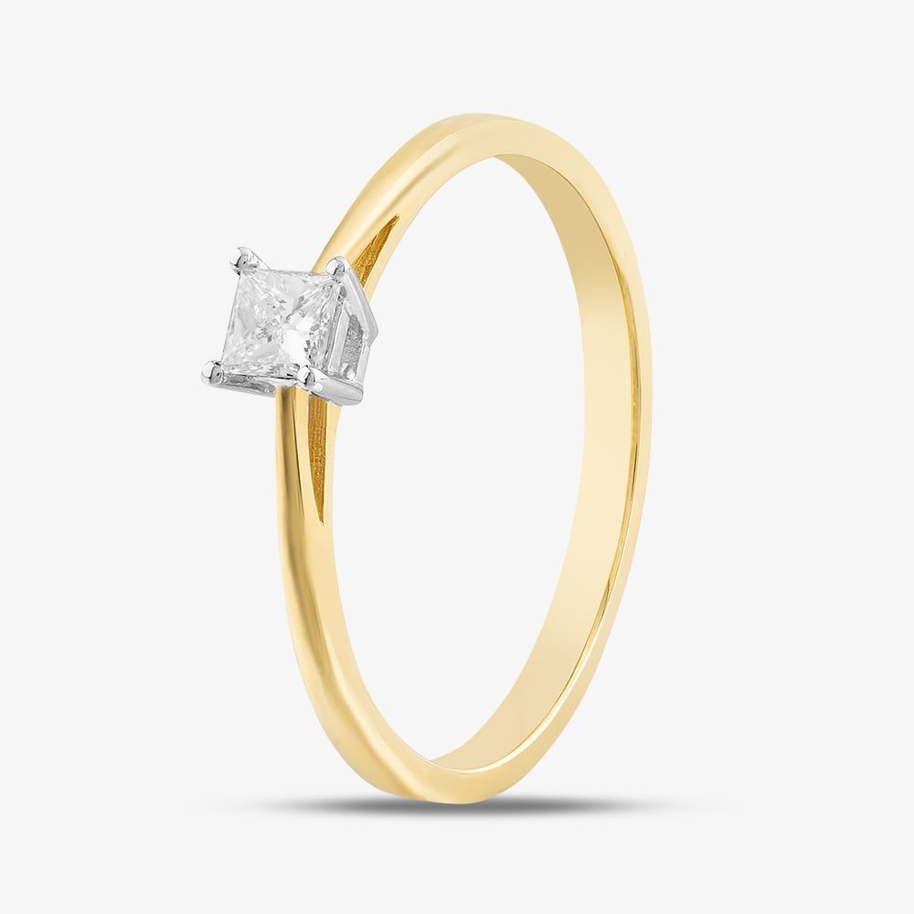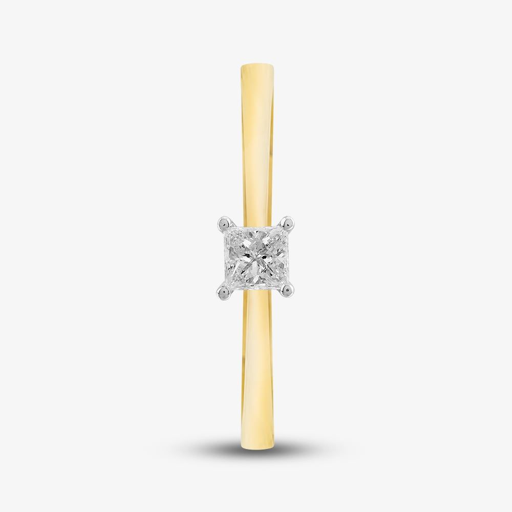 Exquisitely crafted from 18ct yellow gold, this solitaire ring is a sight to behold. This minimalistic ring features a single 0.25ct princess-cut white diamond set in a four-claw setting. A perfect engagement ring that is sure to turn heads.