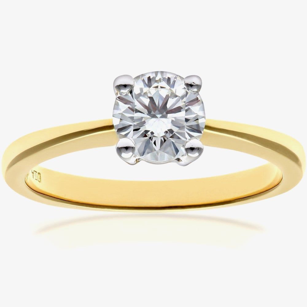 A traditional solitaire ring which has been created in 18ct yellow gold & features a round brilliant cut diamond which measures 0.75ct & is set in a secure four claw setting. The perfect engagement ring to gift your special someone.