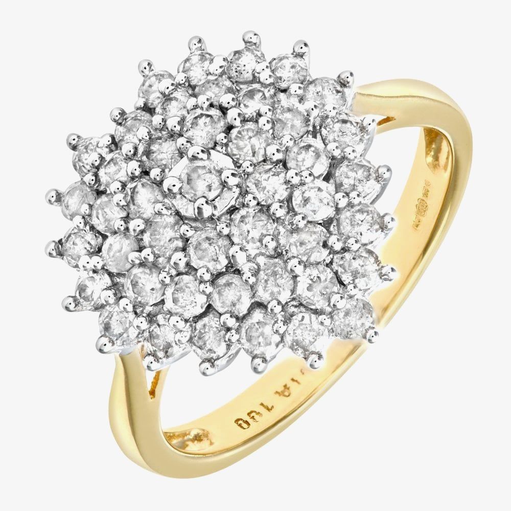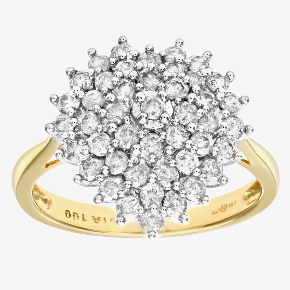 This eye-catching heart cluster ring is crafted in 18ct yellow gold & features claw set sparkling diamonds which has a total carat weight of 1.00ct. This ring is a perfect stand-alone piece or ideal for layering & combining with other rings to create your own unique look.