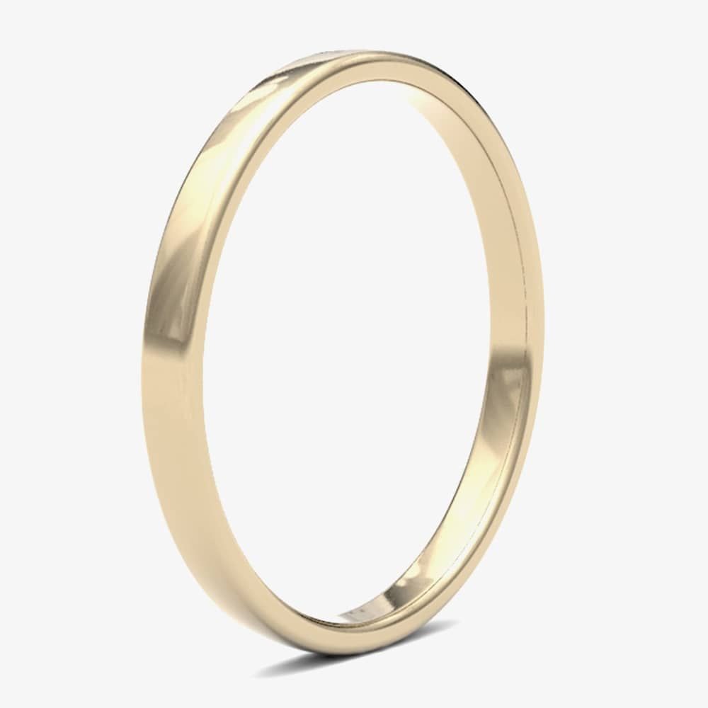 Crafted from lustrous 18ct yellow gold, it exudes warmth and radiance, mirroring the bright future of your union. The delicate 2mm width strikes a perfect balance between subtlety and presence, offering both a dainty appearance and a comfortable fit for daily wear. The light court design ensures a snug and comfortable fit, making it the ideal choice for celebrating your love.