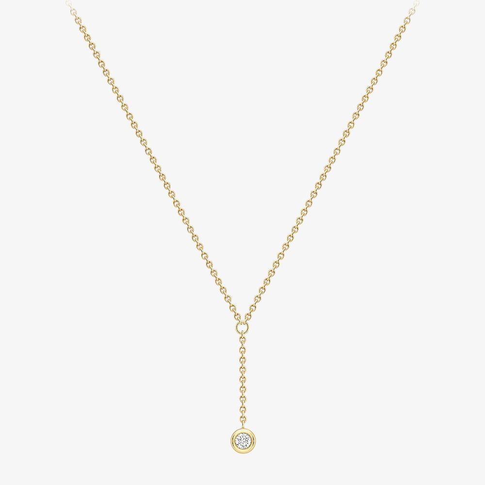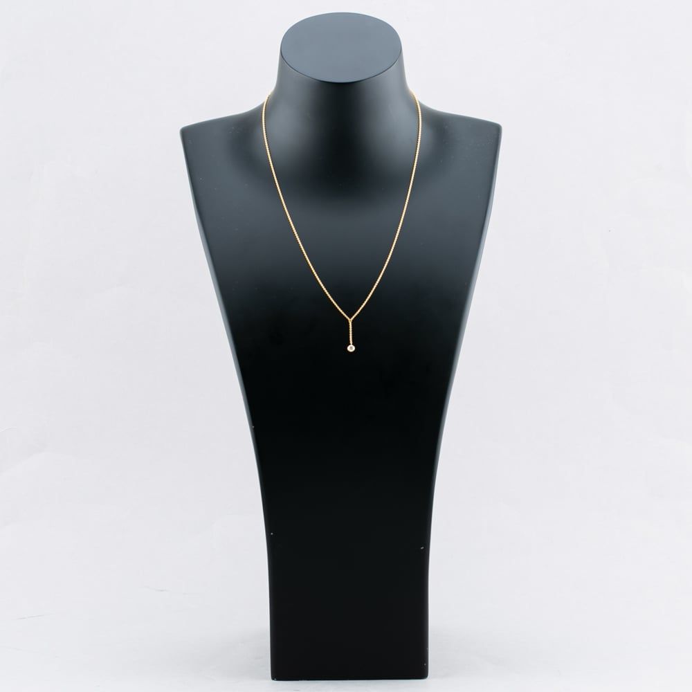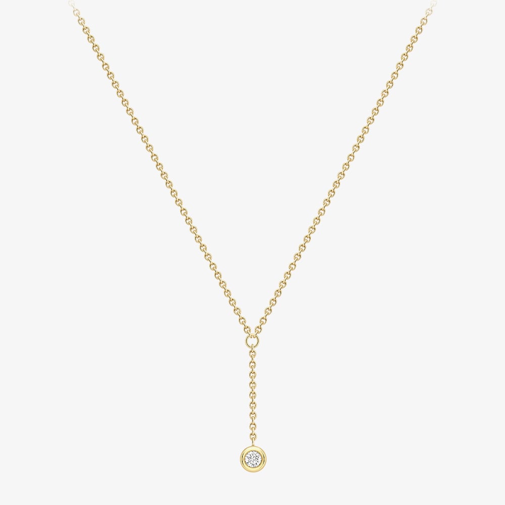 Crafted in 18ct yellow gold, this elegant necklace features a brilliant-cut round diamond suspended from a delicate secondary chain, adding subtle movement and sparkle. Set on a classic trace chain, the design blends timeless sophistication with a modern twist—perfect for layering or wearing solo as a refined statement piece.