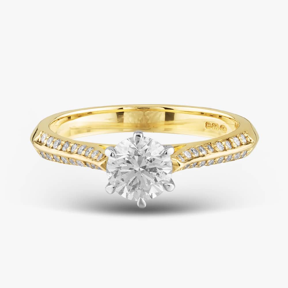 This ring symbolises eternal love and commitment and is sure to turn heads wherever you go. Whether you are looking for a ring to mark a special occasion or add a touch of luxury to your everyday life, this Shoulder Set Solitaire Ring is the perfect choice.