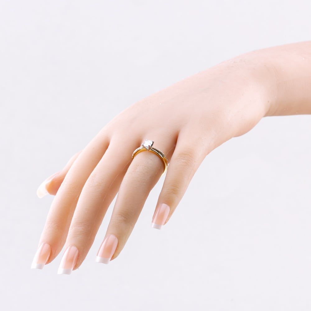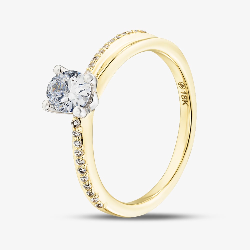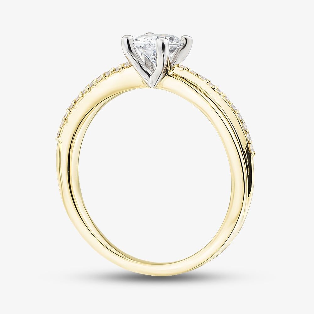 Crafted in fine 18ct yellow gold, this beautiful ring features a crossover design set with a row of sparkling white, brilliant cut diamonds totalling 0.088ct. At its heart lays a stunning 0.50ct oval-cut diamond in a classic four claw setting for enhanced sparkle. Together they create a timeless piece that can be treasured for years to come and is perfect choice for engagements or marking a special occasion or milestone.