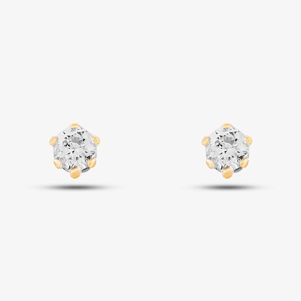 These beautiful 9ct Yellow Gold stud earrings feature cubic zirconia stones set in six claws. They are approximately 3mm.