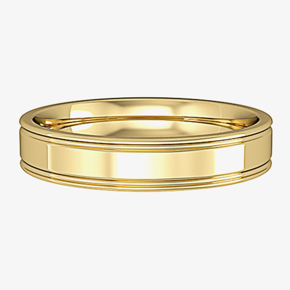 We pride ourselves on the fact that our signature jewellery collection exemplifies quality and style, at very reasonable prices. This piece in particular, crafted from 9 carat yellow gold, has been machined to a court profile for comfort and style. Furthermore, in pursuit of creating pieces as unique as you are, our goldsmith has expertly cut tram lines into the top surface of the band.