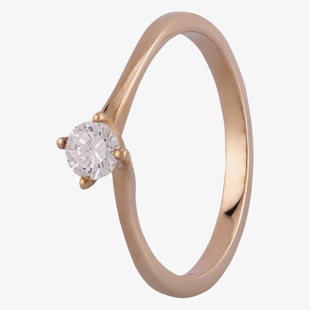 Give your ring finger the eyecatching embellishment it deserves with this gorgeous 9ct gold ring. The dazzling round brilliant solitaire is set in a traditional four claw setting with a literal twist for a sophisticated finish. Our range of gold rings encompasses all the needs of the modern market place; style, sophistication, quality, and a very reasonable price.