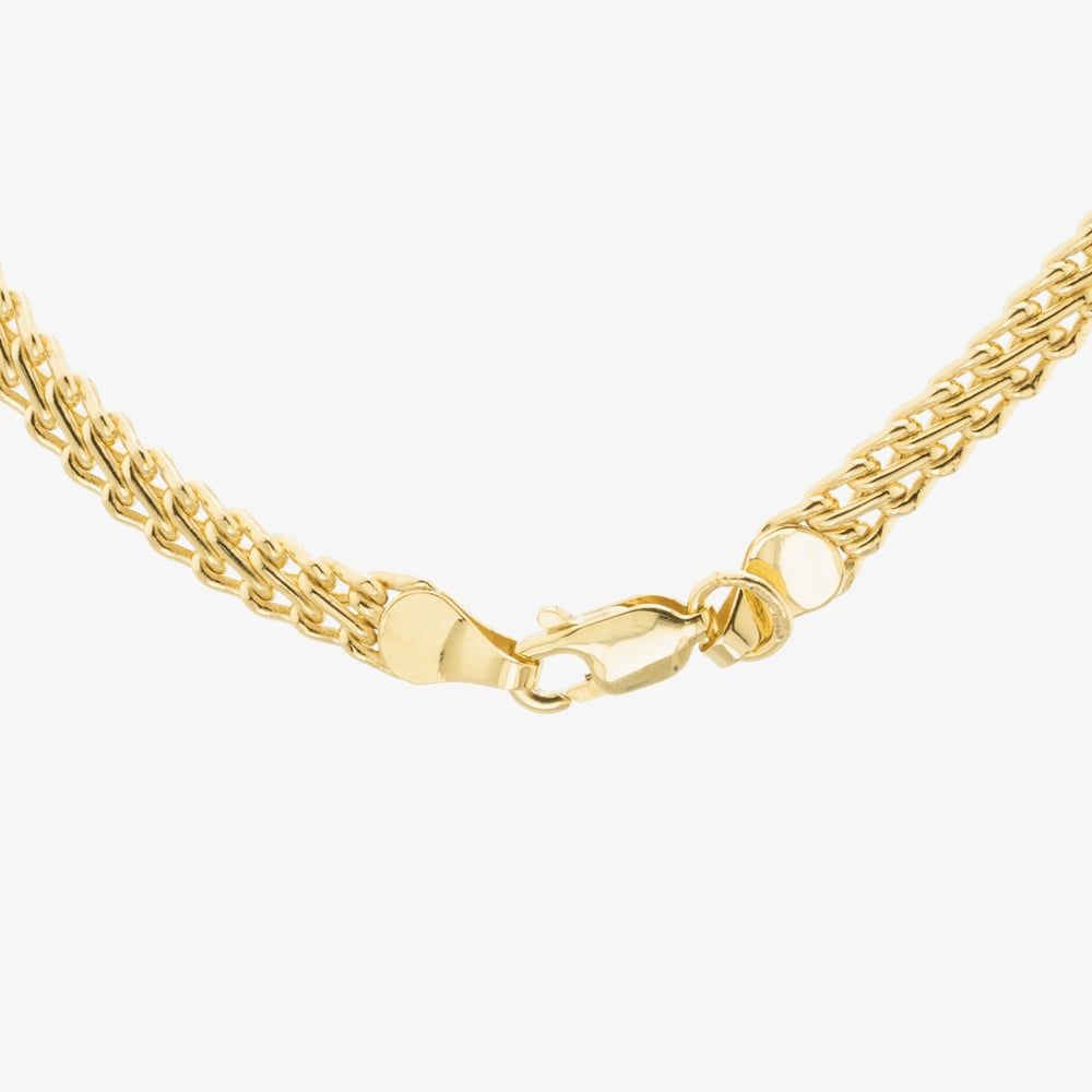 Crafted from 9-carat gold, this necklace features a unique graduated design that sets it apart. At a length of 18 inches, this chain rests perfectly on the collarbone, making it an ideal standalone statement piece that requires no additional pendant. Its inherent elegance makes it suitable for both casual settings and evening events.