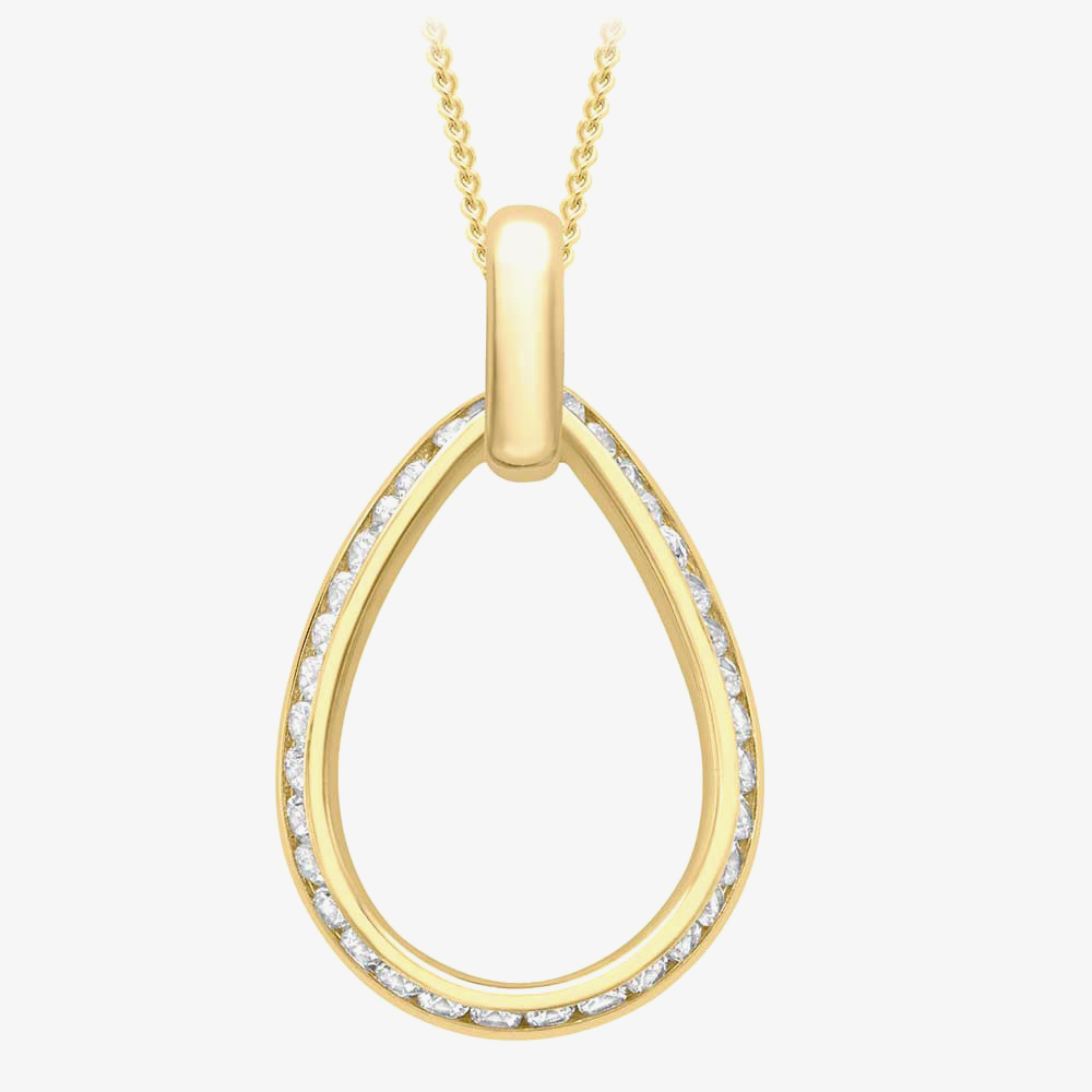 Crafted from 9ct gold, this stunning pendant from the T H Baker Collection boasts a sophisticated open teardrop design, set with sparkling Cubic Zirconia . An elegant piece of jewellery that is sure to add a glamorous finish to any outfit.