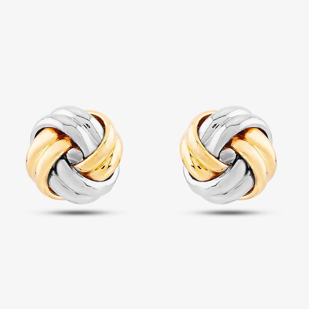These beautiful stud earrings are created in 9ct Yellow Gold and 9ct White Gold and feature a double knot design. They are completed with butterfly backs.