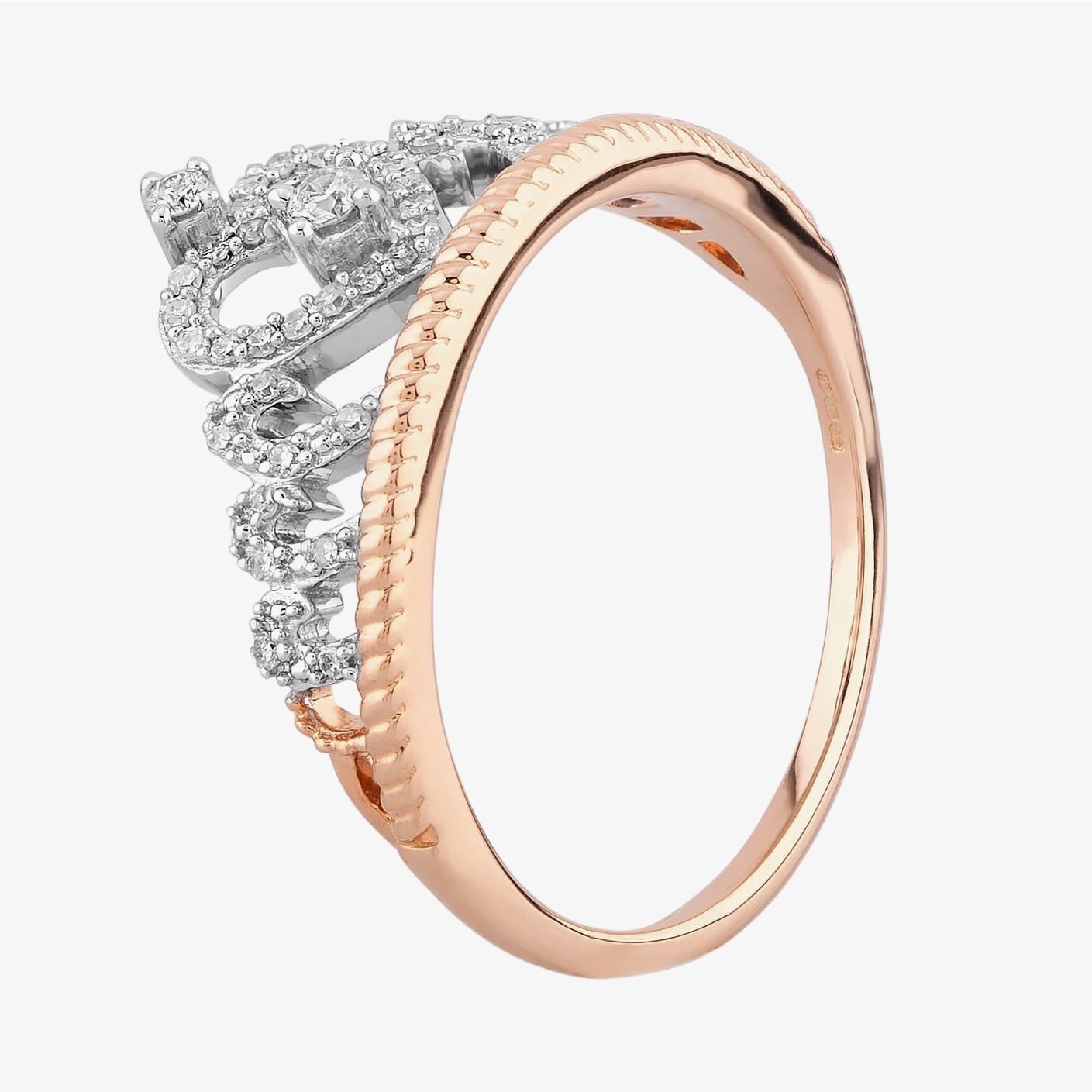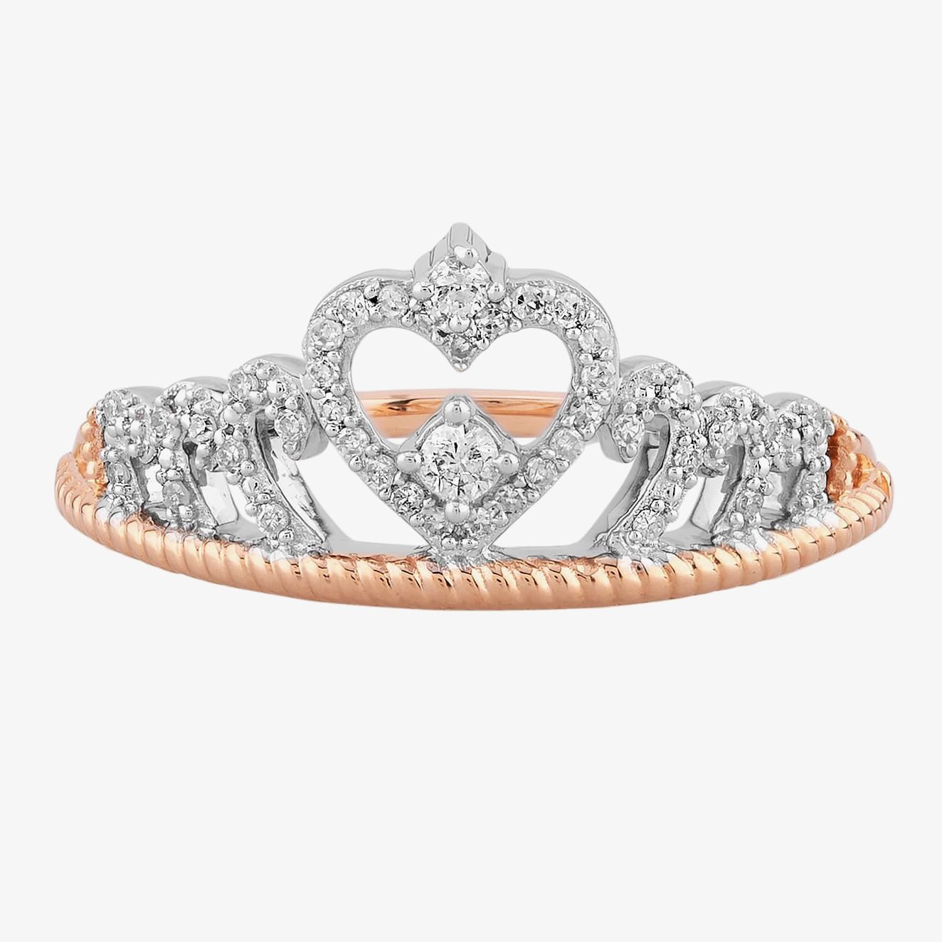 Treat your loved one like a princess with this diamond Pavé tiara ring. A rope detailing is applied to the shank of the ring, whilst the crown section itself is full of filigree styling surrounding a loveheart.