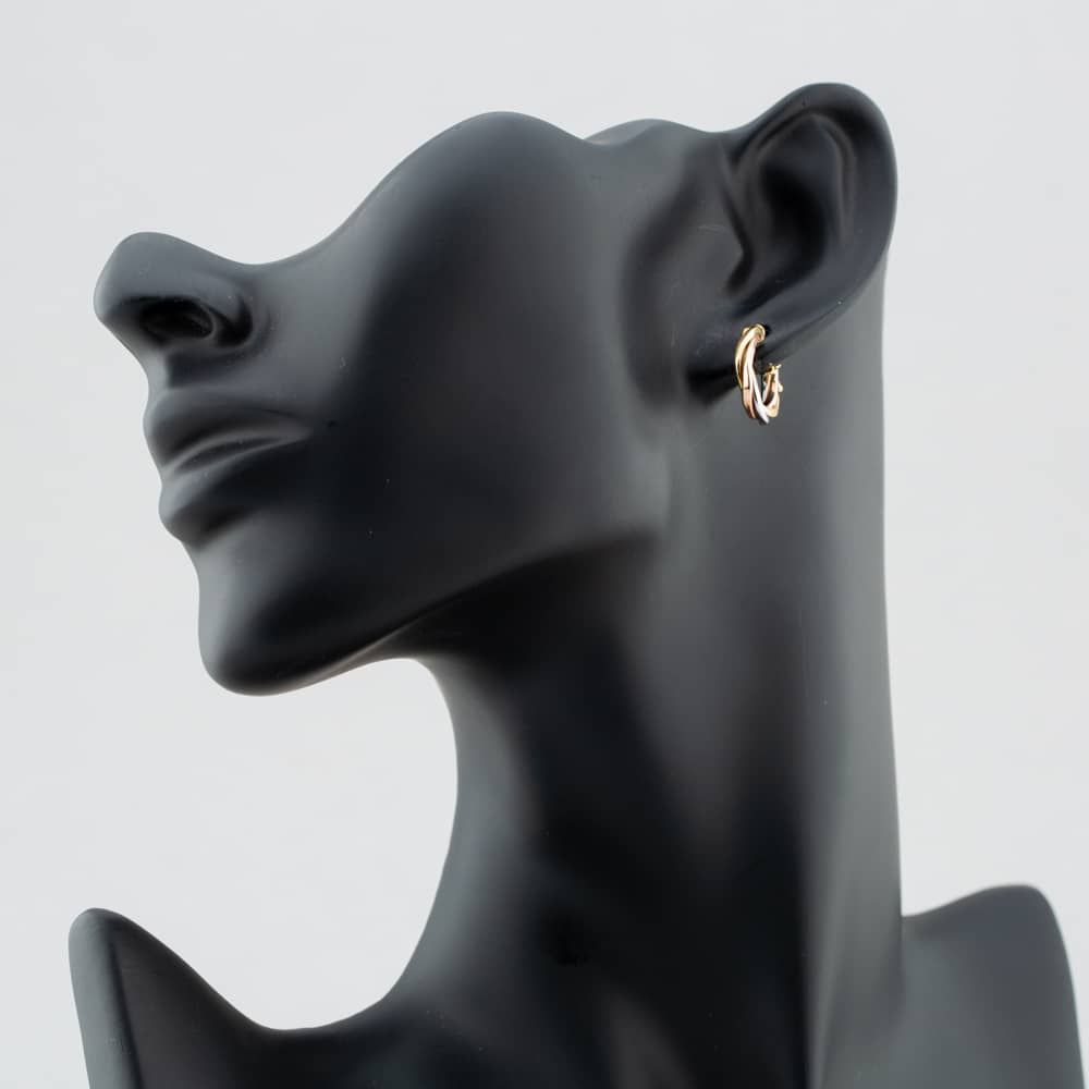 9ct Three Colour Gold 10mm Twisted Hoop Earrings ER524