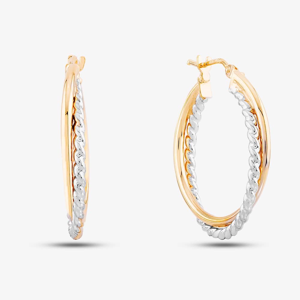 9ct Two Colour Gold Double Hoop Earrings ER947