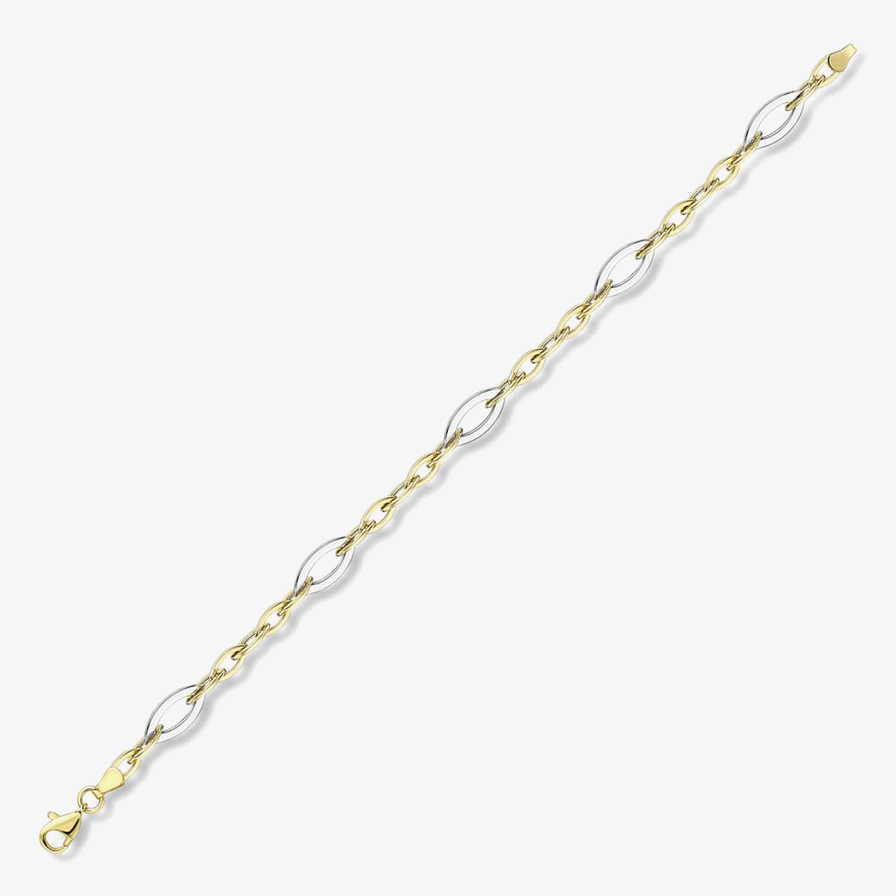 9ct Two Colour Gold Open Marquise Link Bracelet BR602-07
