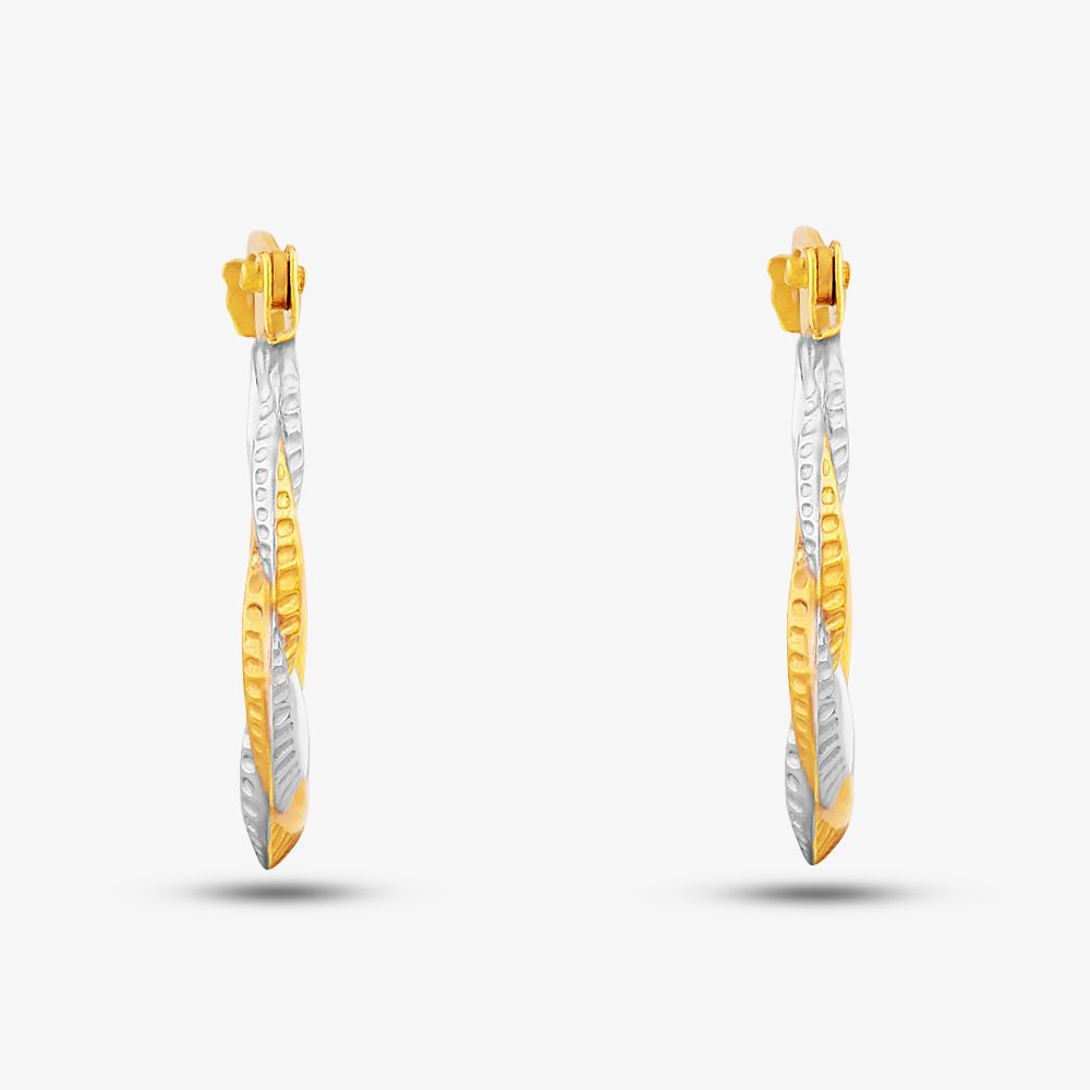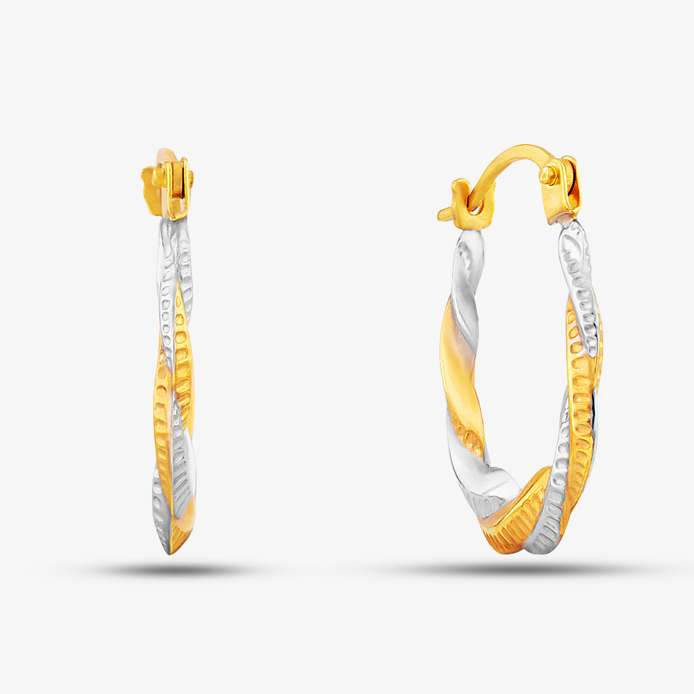 These classic twist creole earrings are crafted in 9ct yellow & white gold with an intricate pattern and have been finished with a hinged snap fastening, the perfect addition to your earring collection.