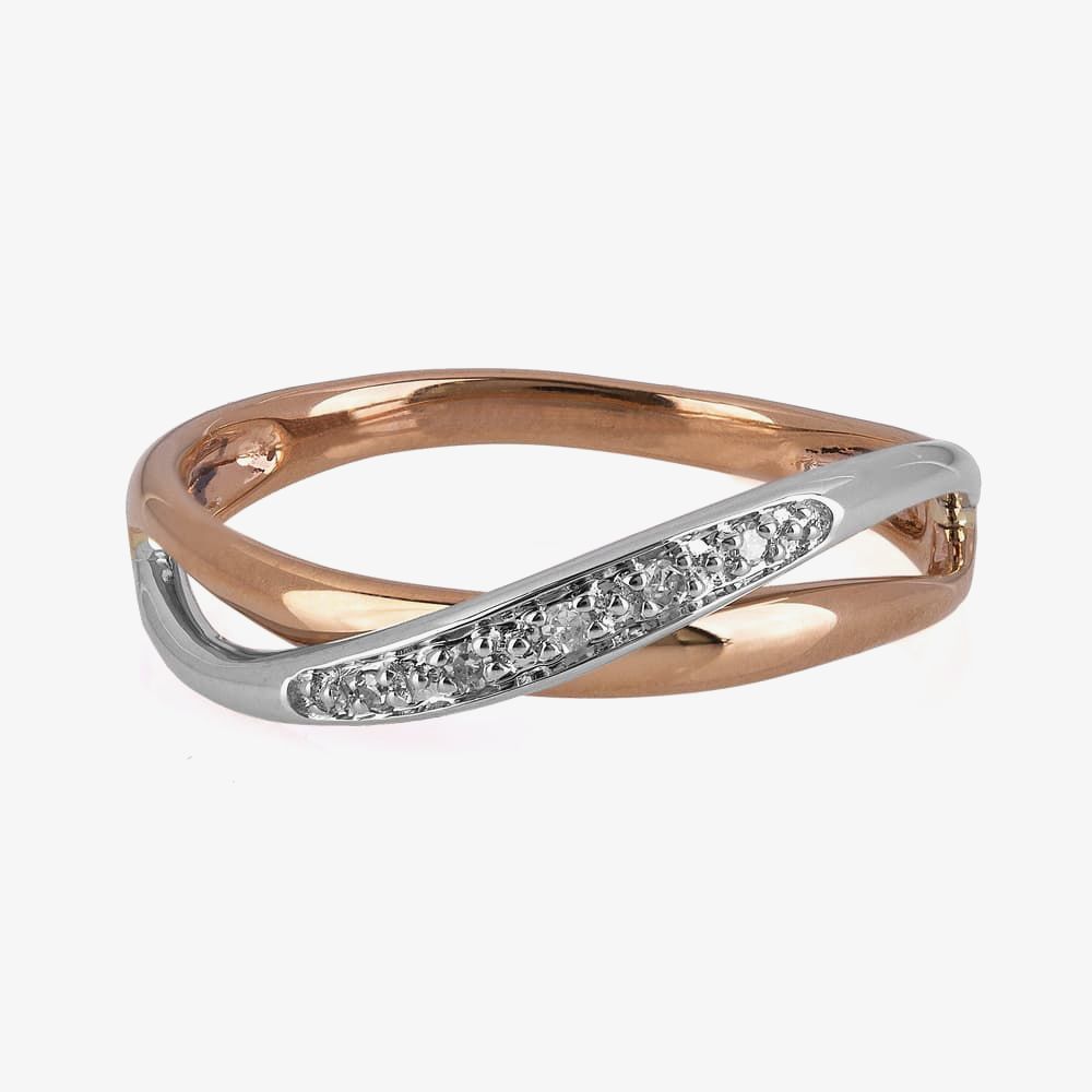 Demonstrating excellent craftsmanship at its finest, is this stunning ring form the T H Baker. Boasting an alluring crossover design, the blend of white and rose gold is accentuated by a row of sparkling diamonds. A captivating piece of jewellery, sure to make a wonderful gift for the one you love.