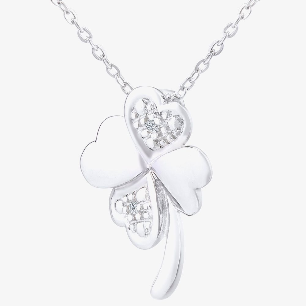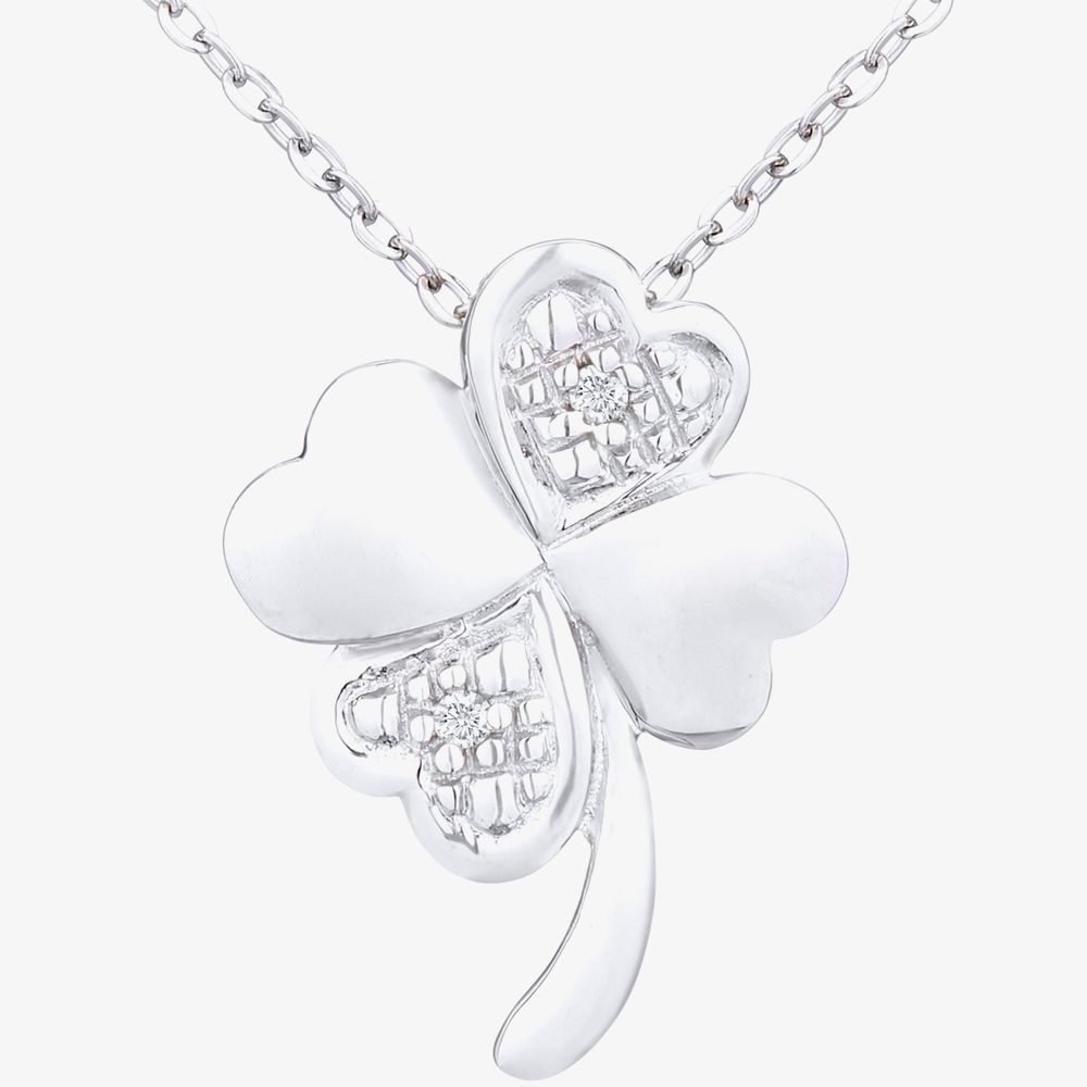 An elegant four leaf clover pendant crafted in 9ct white gold set with 0.01ct of round Diamonds, the perfect understated piece to add your jewellery collection.